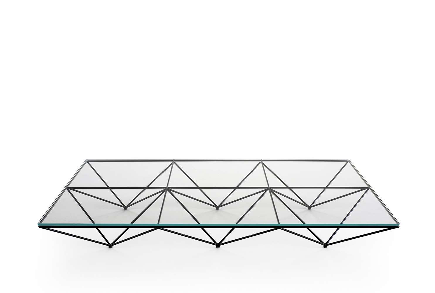 Alanda<アランダ>コーヒーテーブルは、1980年代の幕開けから存在したアイコン的な作品です。そして、2017年に亡くなった偉大な建築家でありデザイナーでもあったパオロ・ピーヴァへのオマージュとしてここに再現されました。非常に成功したデザイン・クラシックであり、今やヴィンテージとして珍重されていたコンプリメントであるアランダは、豊かさと強さの象徴として、建築言語の世界の魅力的で特徴的なエレメントの縮小といえる最も典型的なオブジェクトとして、スタイリッシュなメッセージを発信していました。アランダは、床に置かれるための要素とそのものの構造が一体となっていて、ピラミッドや宇宙のエネルギーの象徴といえる魔法的な幾何学フレームを連想させます。