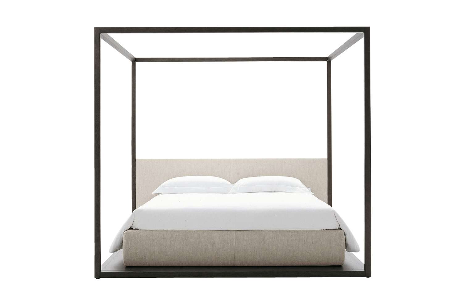 Alcova<アルコバ>は、クラシカルな天蓋付きベッドを現代風にアレンジしたもので、ベッドサイドとヘッドボードはレザーまたはファブリック製で、ベッドの足元にオープンコンパートメントを備えたサービスエレメントを設置するのに十分な大きさのプラットフォーム上に設置されています。