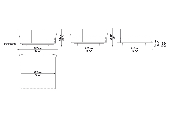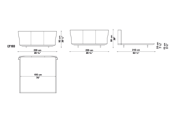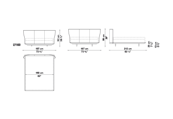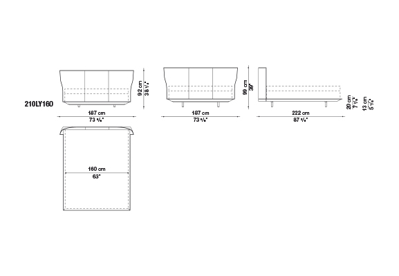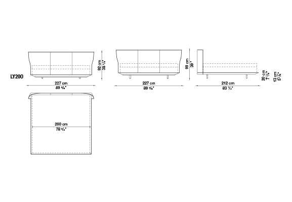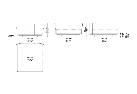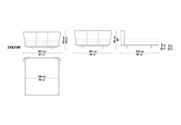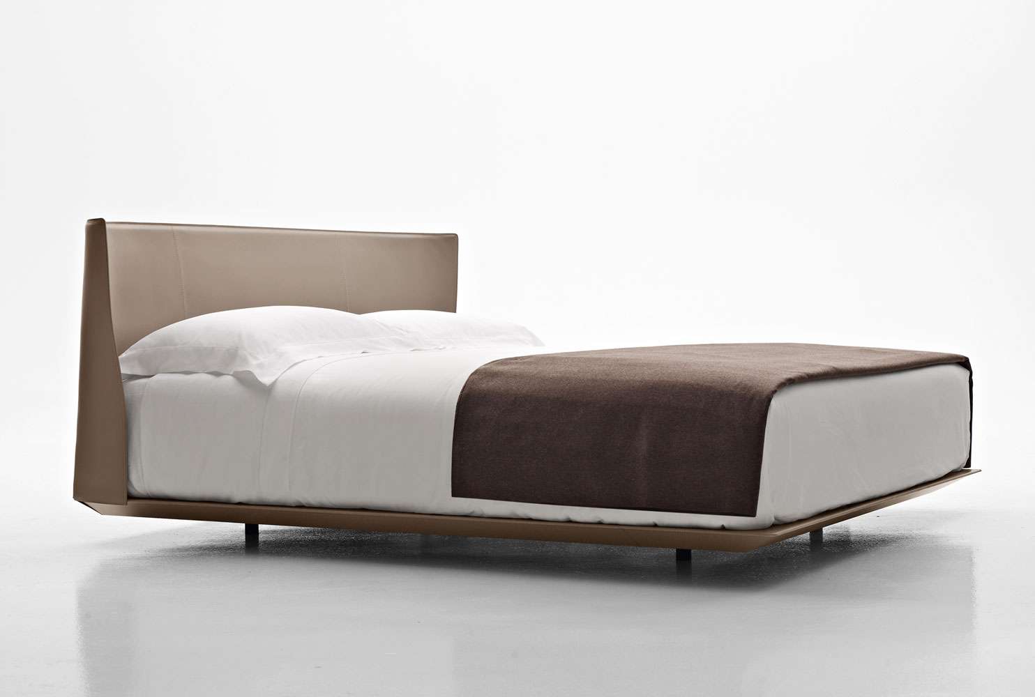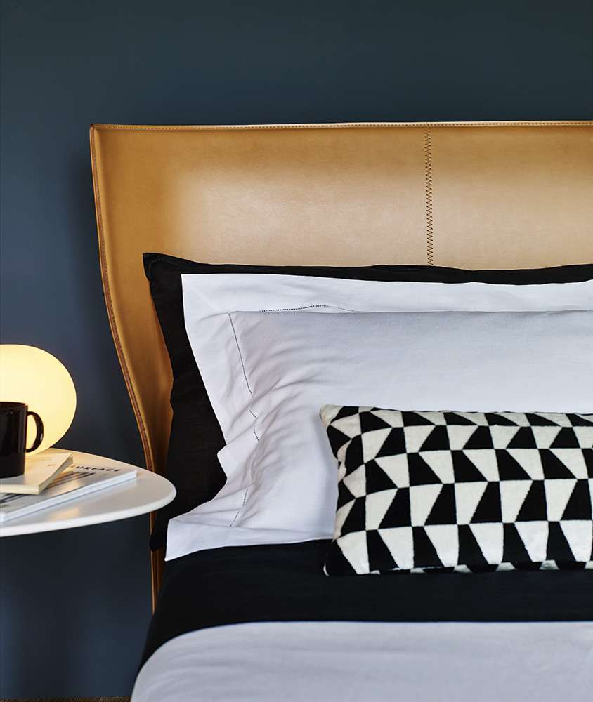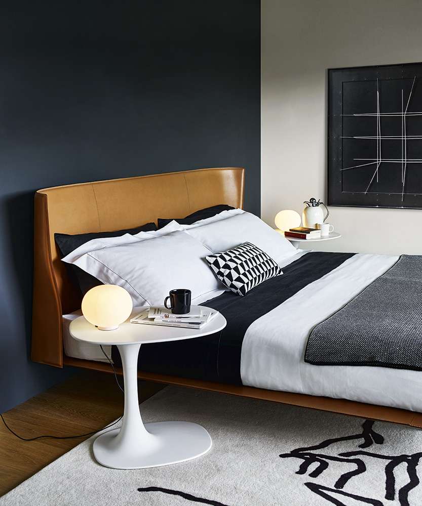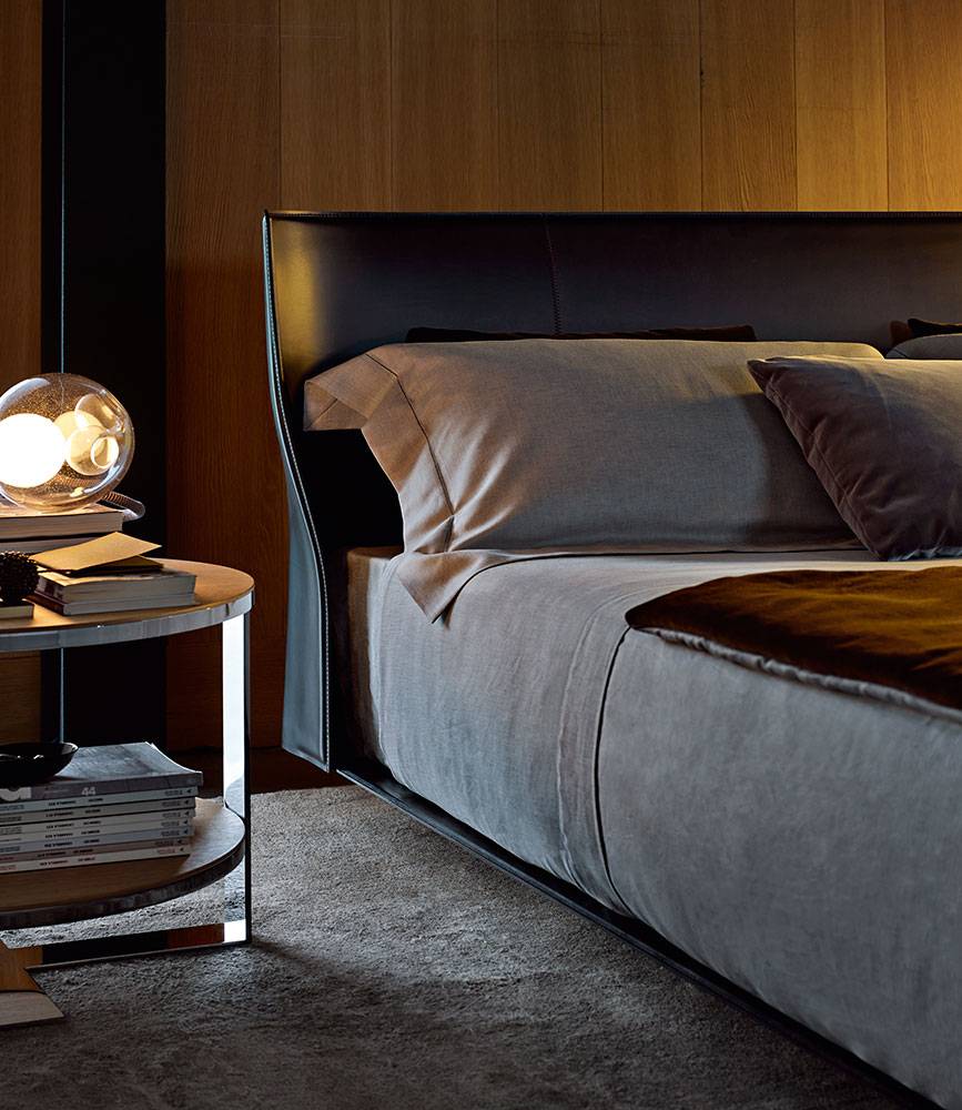Alys<アリス>のヘッドボードの動きと自然な傾きは、一枚の革を根元の2箇所で挟み込んでいることにより、生まれています。ブラッティ兄弟は、伝統的な製法よりも快適に作られた革張りをテーマにしたDoyl<ドイル>チェアを先に発表し、今回もこの得意な素材を使用しました。Alysのために、彼らは快適で保護性の高いヘッドボードをデザインしました。薄い外周の帯に縦方向の縫い目がある、非常に効果的な形状です。ベッドフレームは、2組の脚部(高さ5cmまたは12cm)を標準装備しているため、2つの異なる高さに設置することができます。ベッドの表面は低く設計されており、快適なマットレスの浮遊感を表現しています。