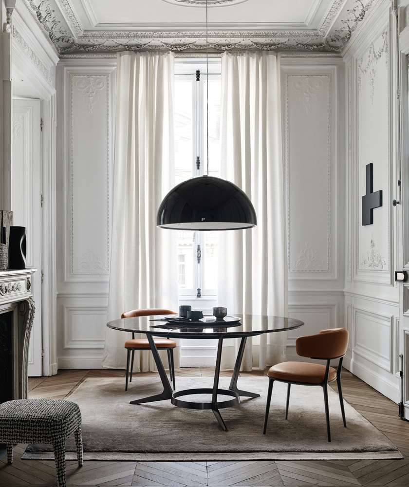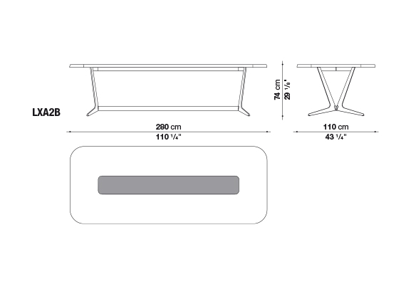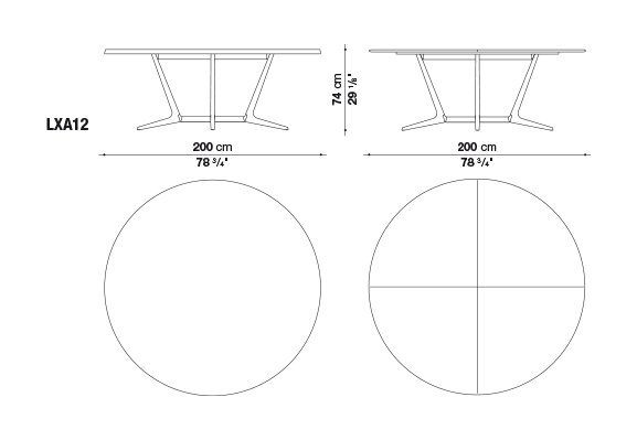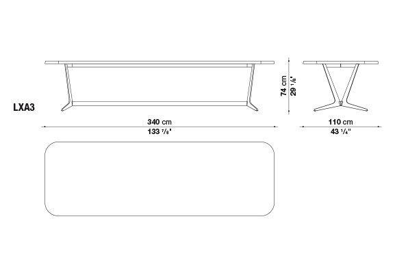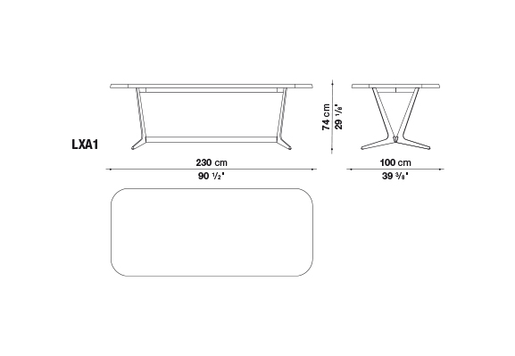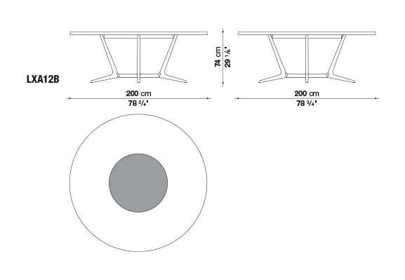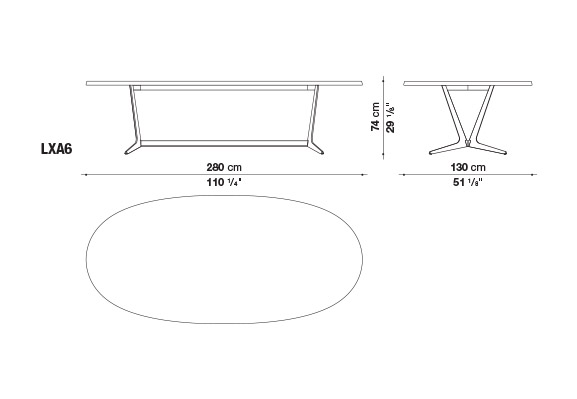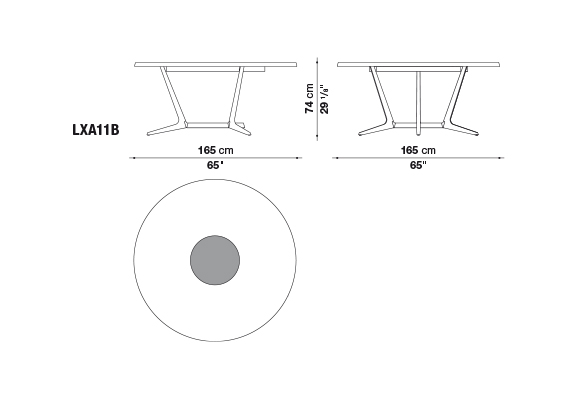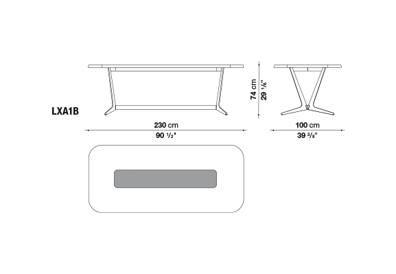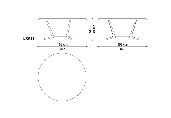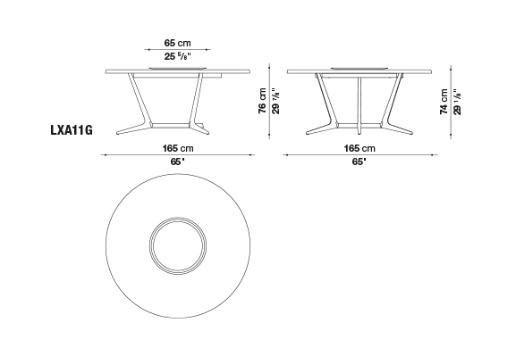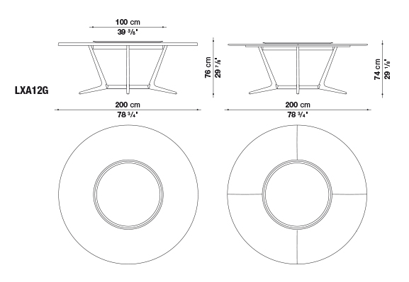 天板は長方形と円形があり、サポート脚は一体成型のダイキャストアルミニウム製で、2つもしくは3つの脚がクロスバーで連結されています。円形テーブルは木質5種、大理石4種から選ぶことができ、よりエレガントな仕様として木質天板の中央部に光沢のある大理石を嵌め込んだタイプもあります。円形テーブルのみ、センターに木質もしくは大理石の回転トレーを載せることもできます。