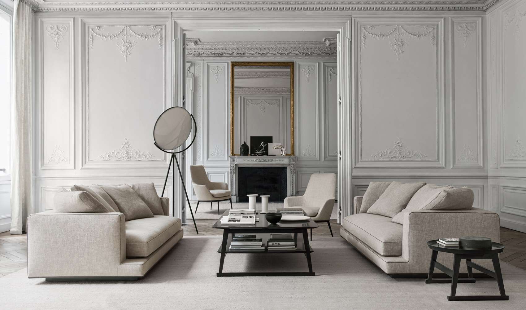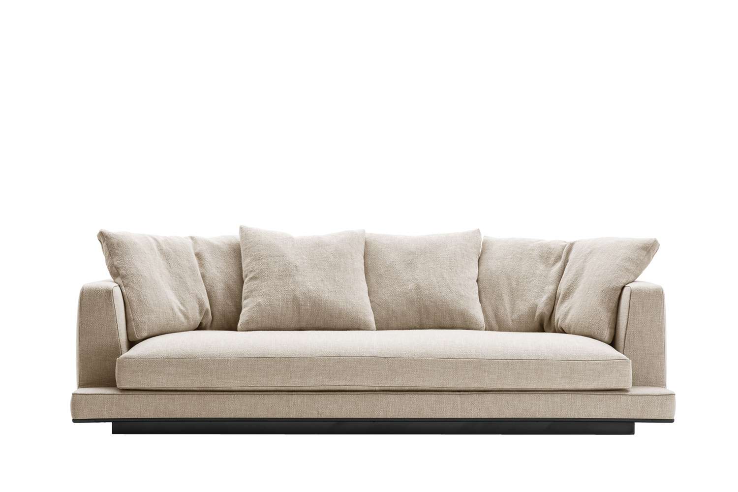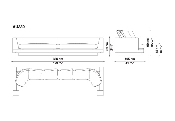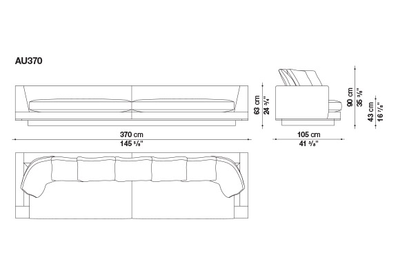 床から浮き上がった幾何学的なボリュームと、ソフトでクリーンな厳格なラインが、Auraeソファの特徴です。このコレクションは、高いレベルのフォーマルなエレガンスを提供します。5つのサイズの直線的なシーティングは、ゆったりとした奥行き(幅cm.210-250-290-330-370 x 奥行きcm.105)があり、ソフトな背もたれのクッションが最高の座り心地を保証します。丁寧に仕立てられた専用のファブリック生地には、フォルムを際立たせるフェイクレザーのトリミングが施されています。布地のほか、縫い目のある革製カバーも用意しています。下部外周のエッジは、ブロンズ・ニッケル、ブラック・クローム、グラファイト、アンバーの5種類の金属塗装仕上げがあります。