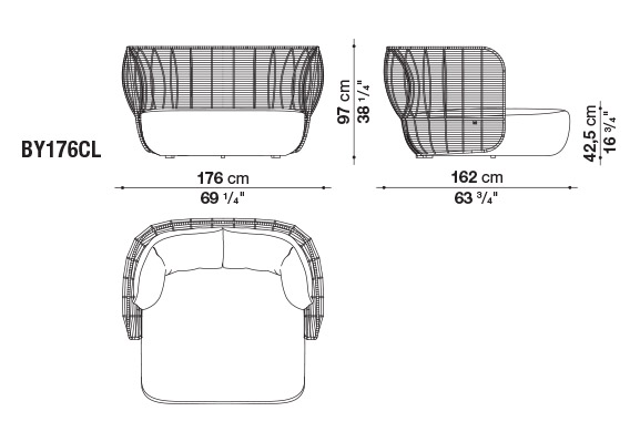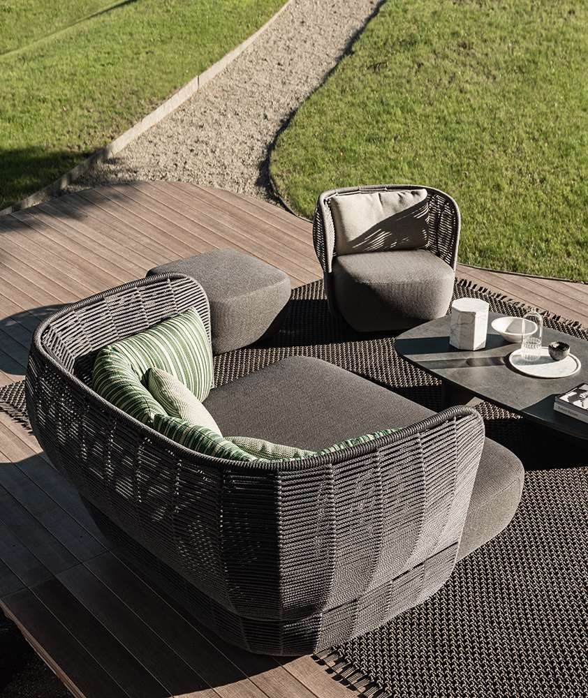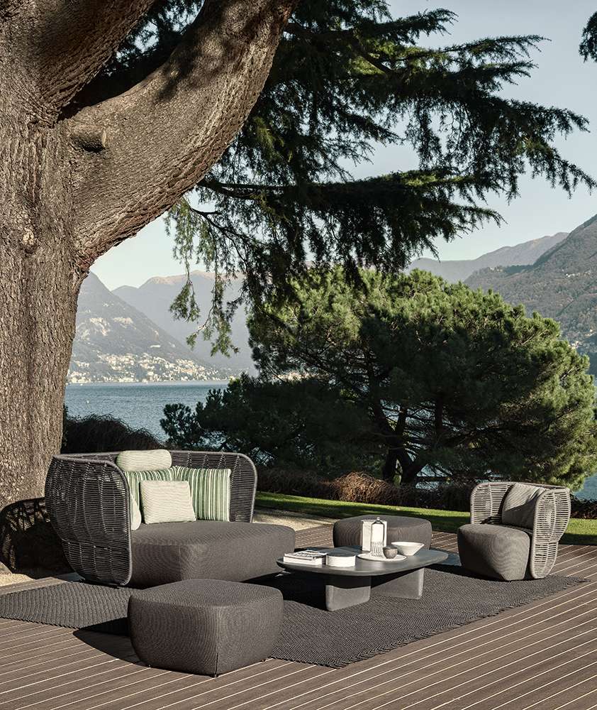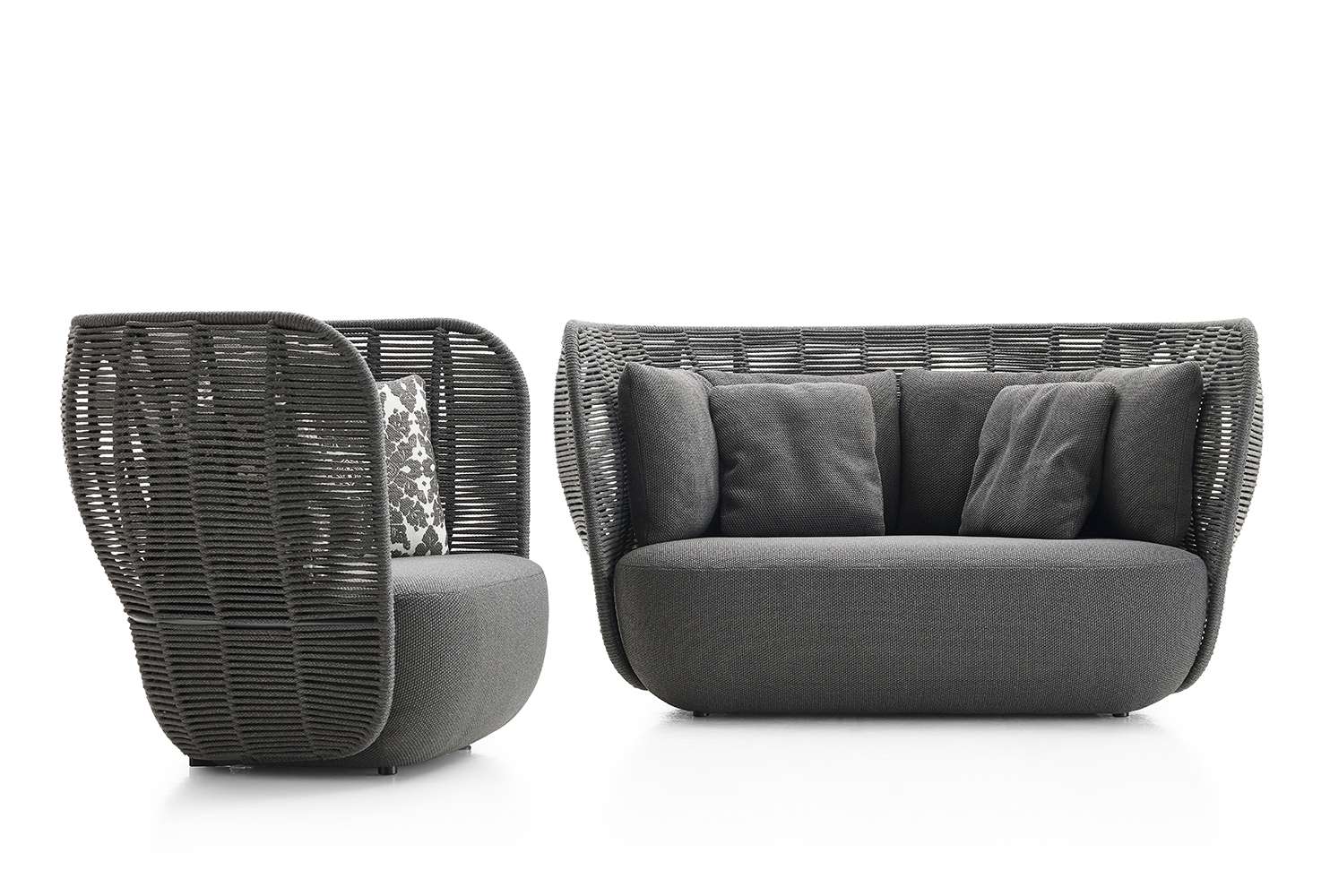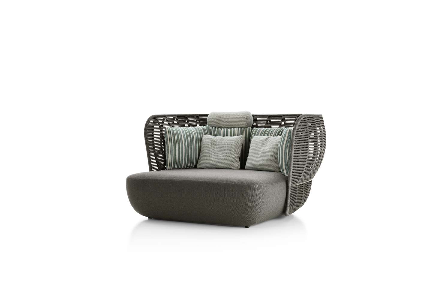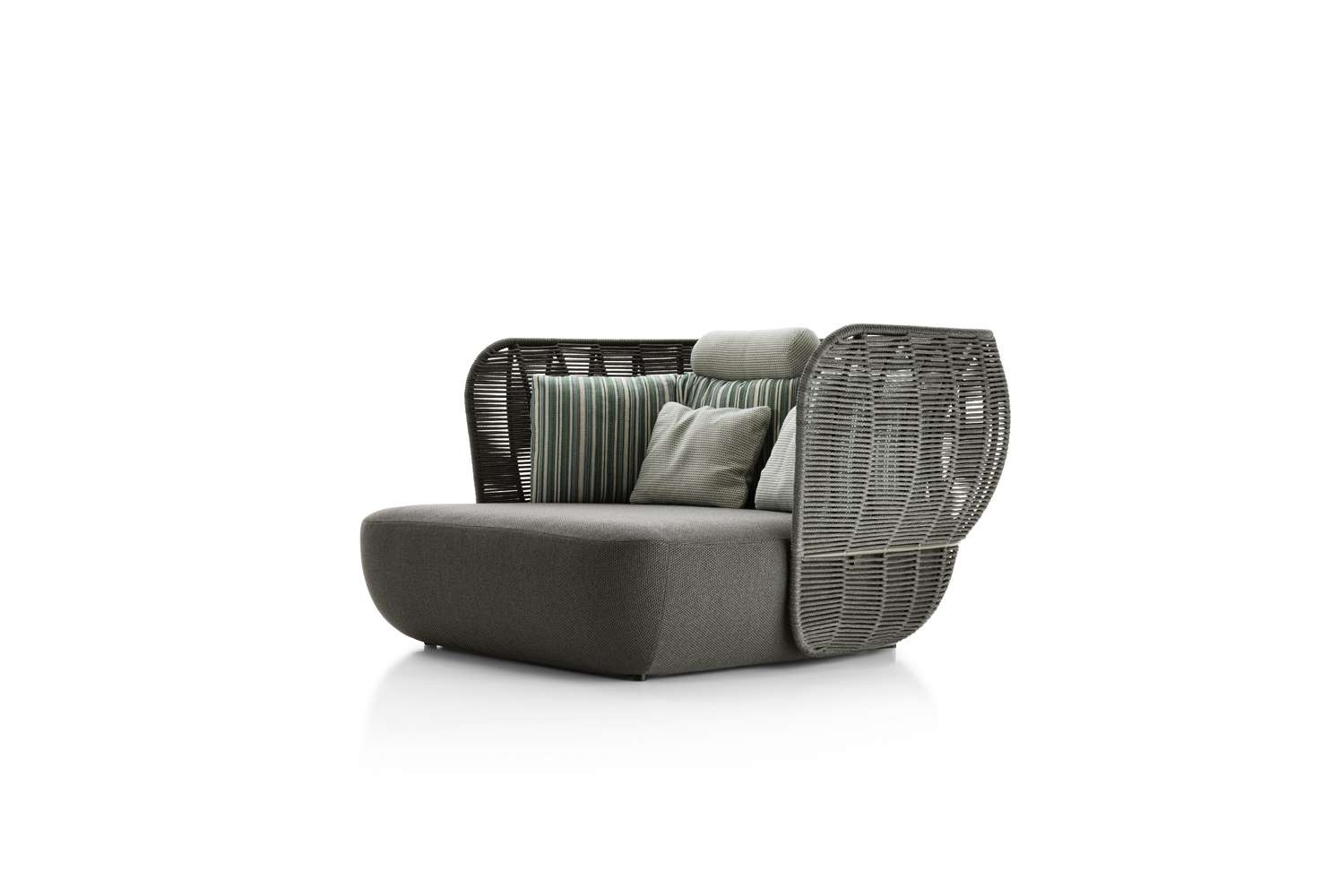 パッドに包まれた岩のような座面とソフトなクッションから構成され、エレガントで快適なB&Bのインドア用製品の雰囲気をもっています。