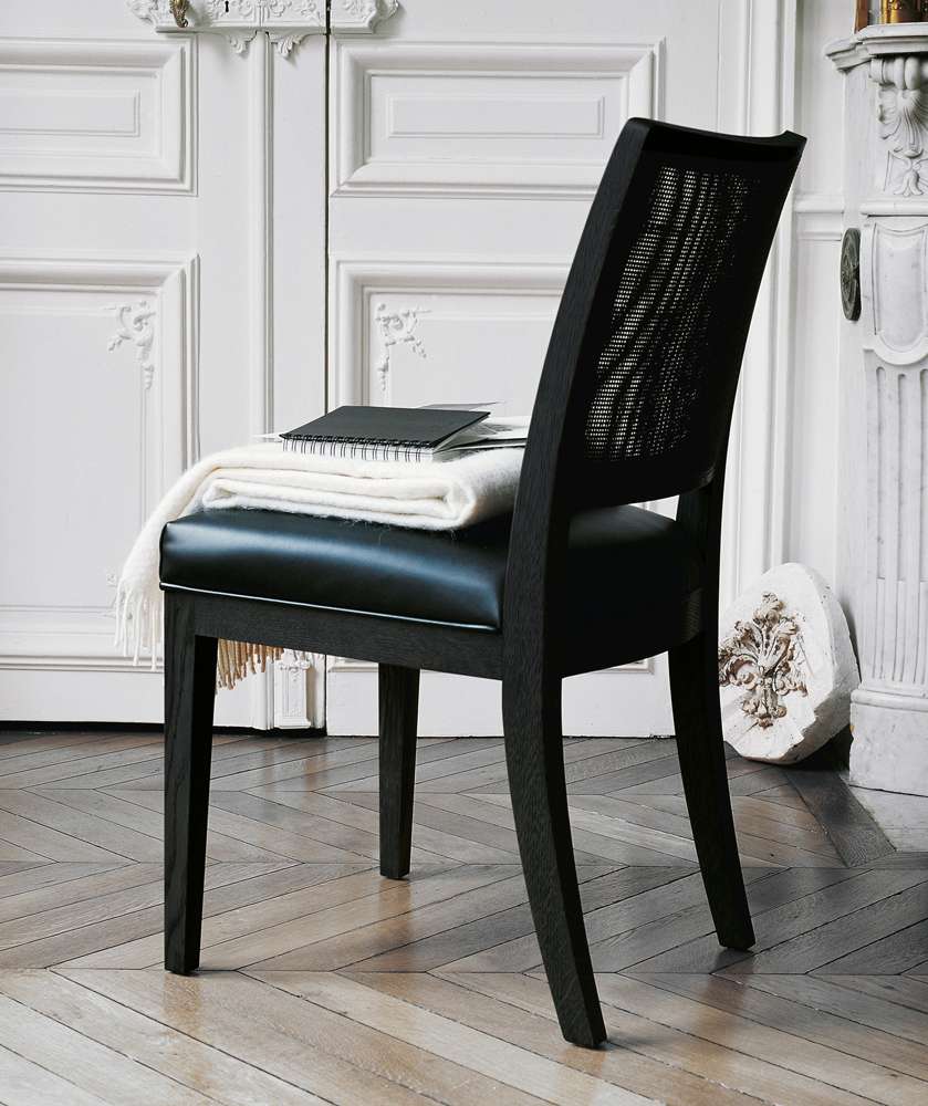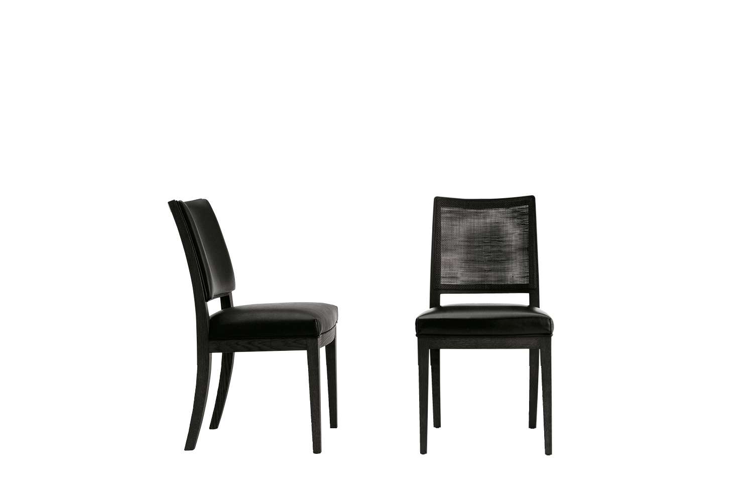 このチェアは、木製フレームにレザーまたはファブリックでカバーを施したシートを組み合わせました。背もたれにわら材を使用したバージョンもあります。木製部分には、グレーオーク、つや消しのライトオーク、つや消しのブラックオークを用意しています。