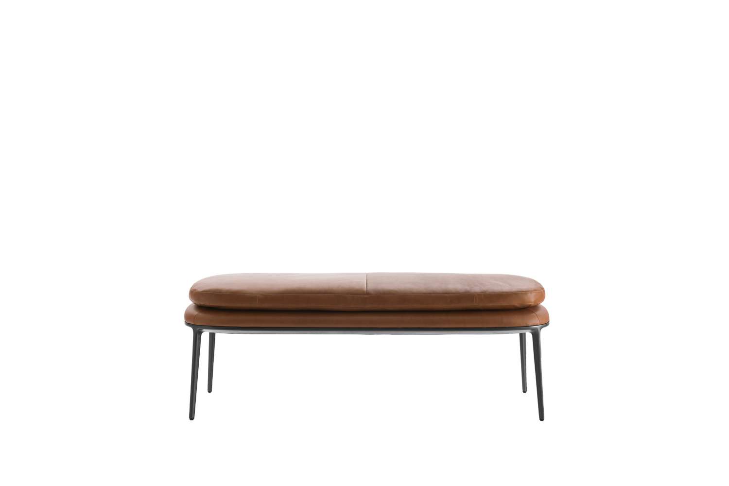 クラシックでありながらコンテンポラリーなCaratos<カラトス>ベンチは、リビングエリアのソファやチェアに合わせるだけでなく、寝室にもさりげなくフィットする多目的家具です。ベンチは、Caratosコレクションの典型的なベースである、様々な仕上げが可能な象徴的なアルミダイキャストフレームを採用しており、ファブリックまたはレザーのシートカバーと組み合わせることができます。特にレザーは、このベンチの洗練された性質を高め、「馬具」のような外観を与えています。