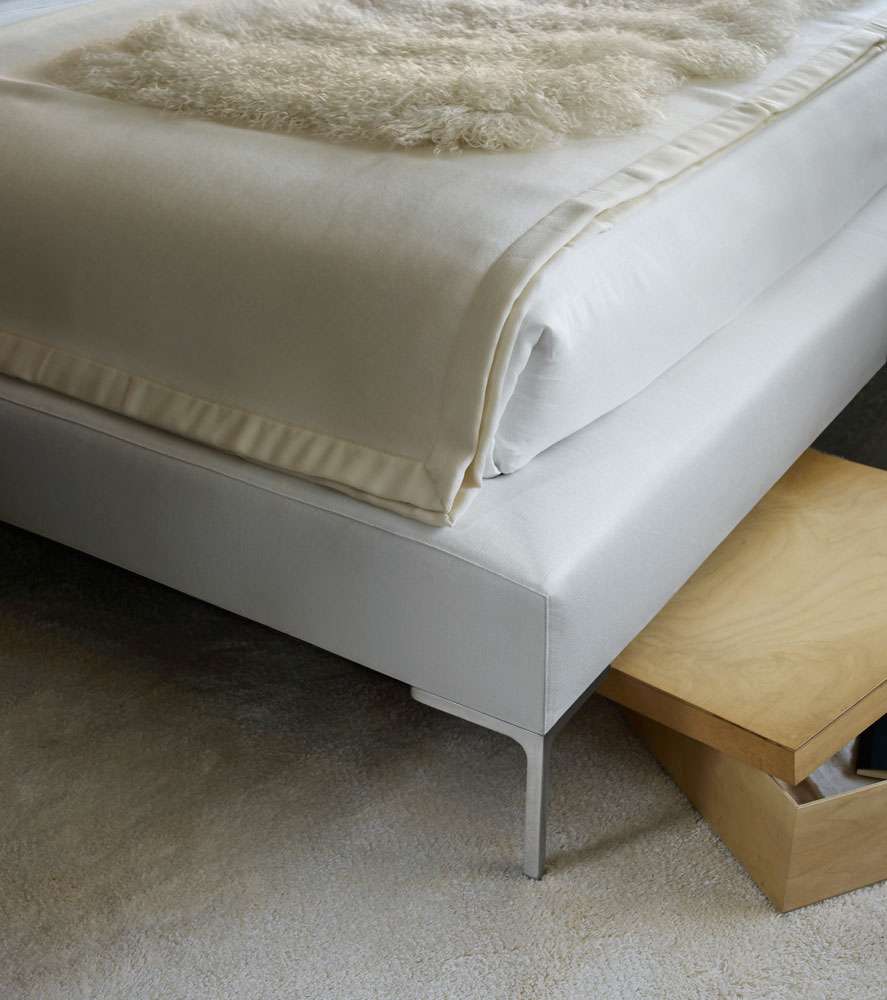 Charles<チャールズ>は、ファブリックまたはレザーを使用したベッドで、マットレスからサイドが少し出ている印象的なタイプと、バンドがマットレスと同じ位置にあるシンプルなタイプの2種類があります。同名のソファを進化させたCharlesベッドは、逆L字型の脚部が特徴的なデザインとなっています。また、キャスター付きのタイプもご用意しています。