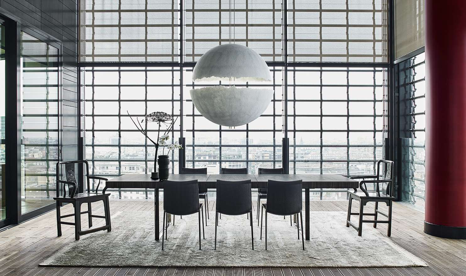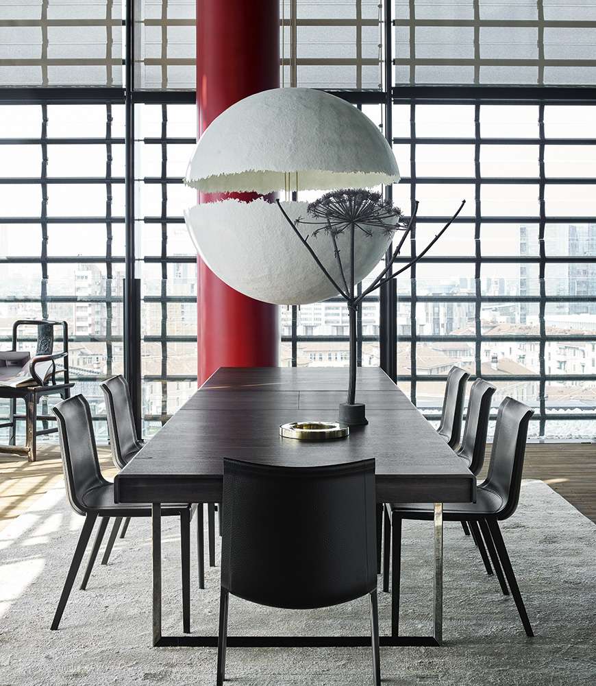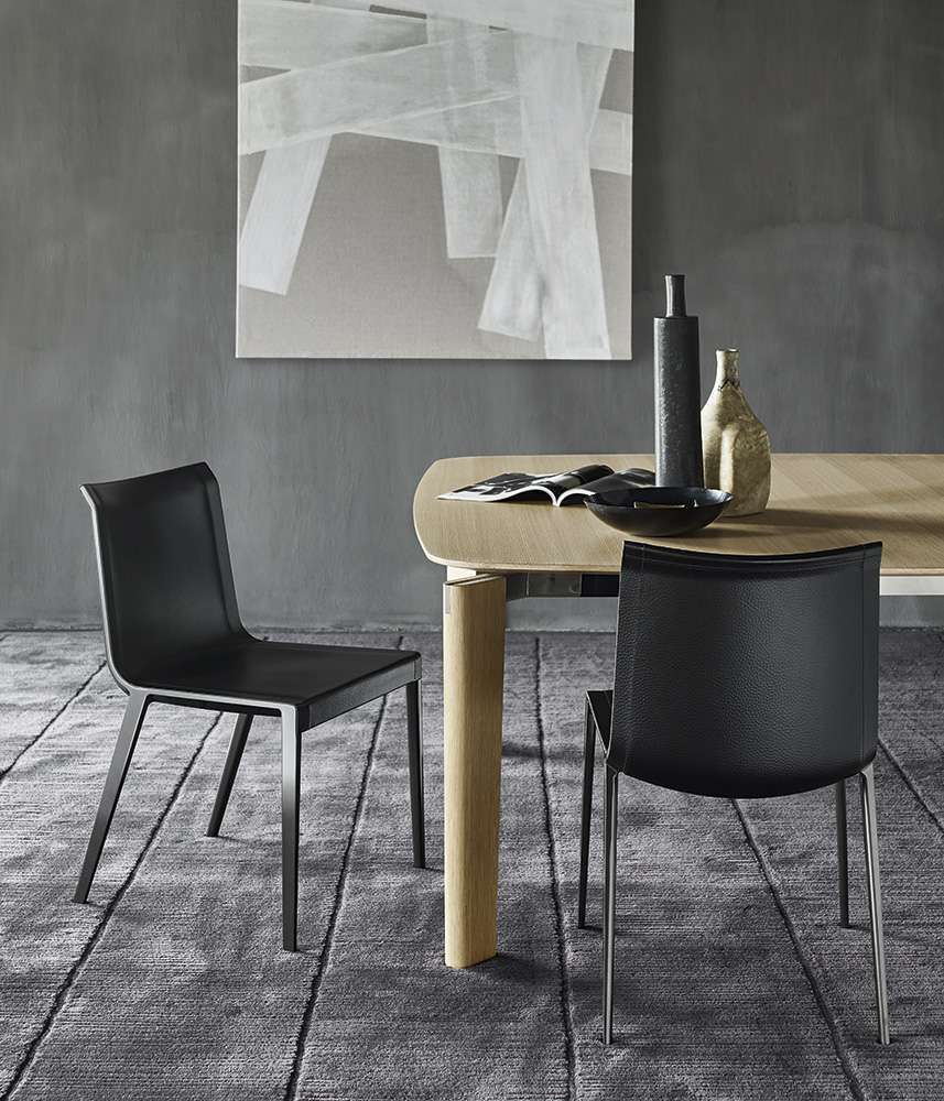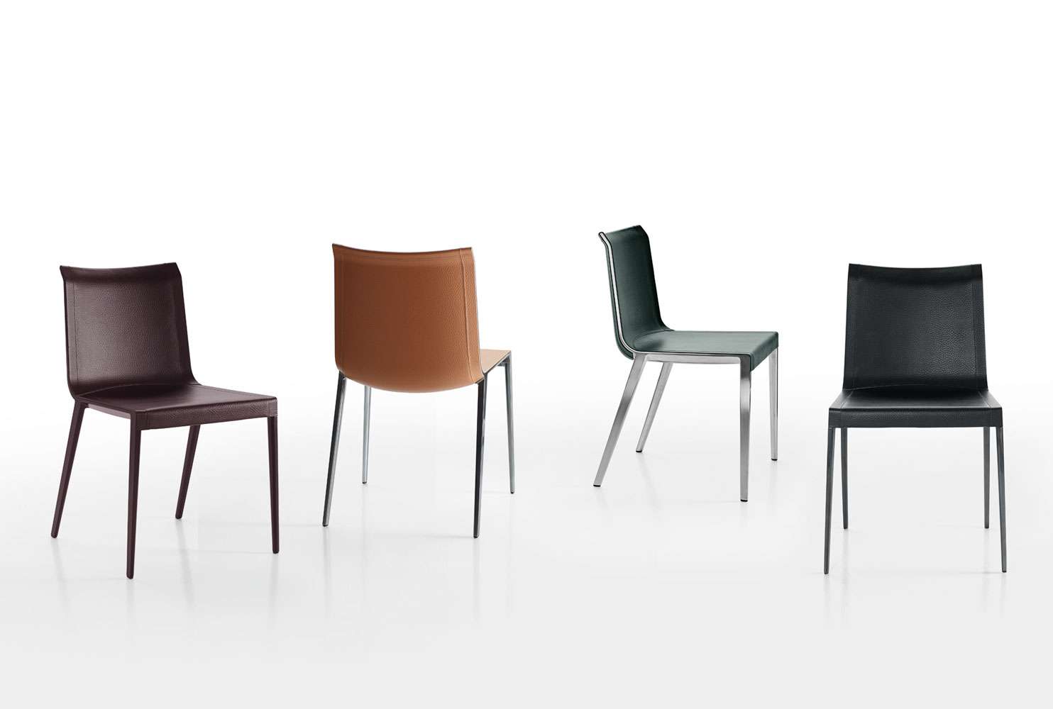 アントニオ・チッテリオのCharlotte<シャルロット>は、軽やかさを追求したチェアです。シェルは完全に覆われていますが、側面にフレームの輪郭が見えるため、シートのラインが強調されています。カバーはローカットのフルグレインレザーで、6色を揃えています(ナチュラル、ブラック、ダー クブラウン、マッドグリーン、ボトルグリーン、ボルドー)。アルミニウムフレームは、ピューター色、ブロンズ色、ブラッククローム、ブラック色といっ た多様な仕上げや、カバーと調和させたボトルグリーンまたはボルドーでの塗装を用意しています。