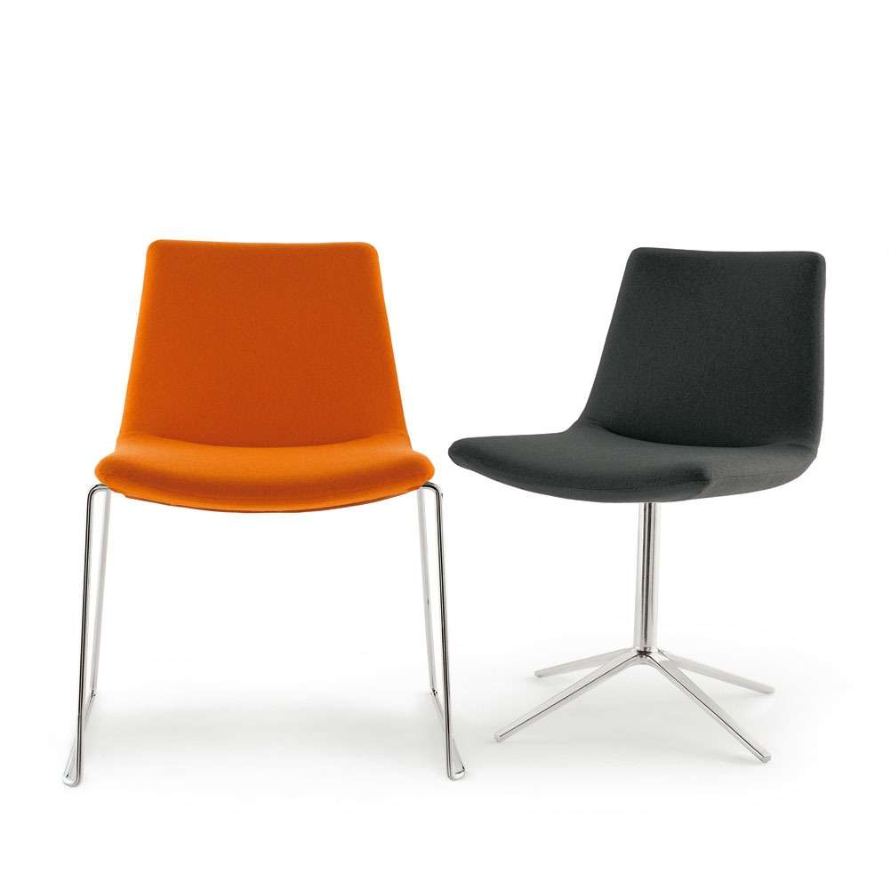 Metropolitan<メトロポリタン>チェアを進化させ、新しいタイプのパッケージとカバーで表現しました。リニューアルされたフレームは、回転シートを備えたサテン仕上げのアルミニウム製4本スポークのクラシックなものから、スタッキングが可能なクローム仕上げのスチール製のタイプもご用意しています。