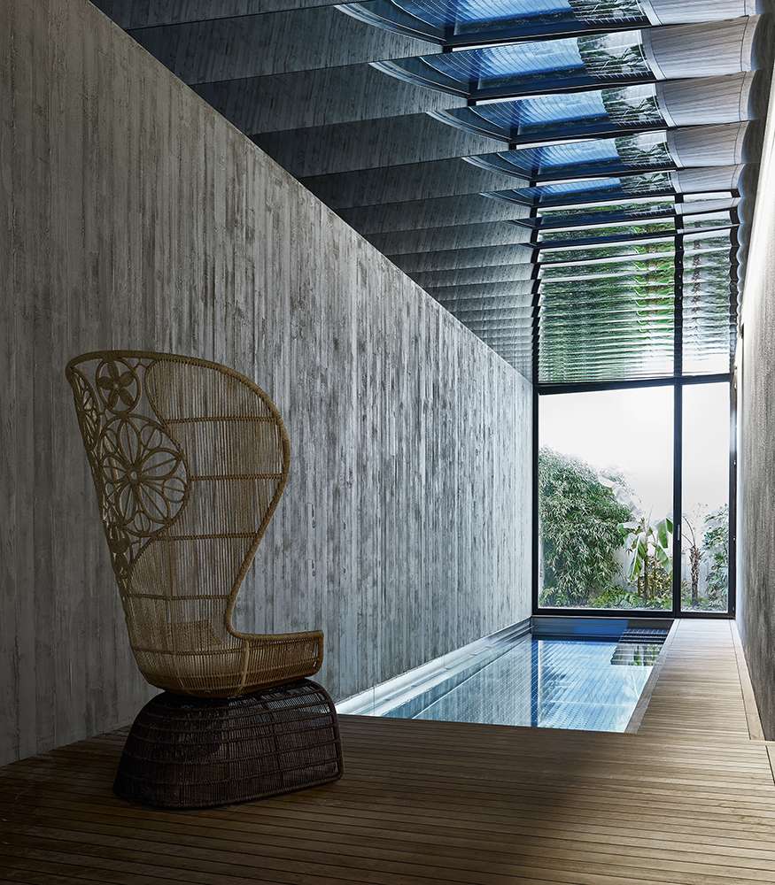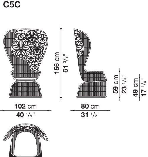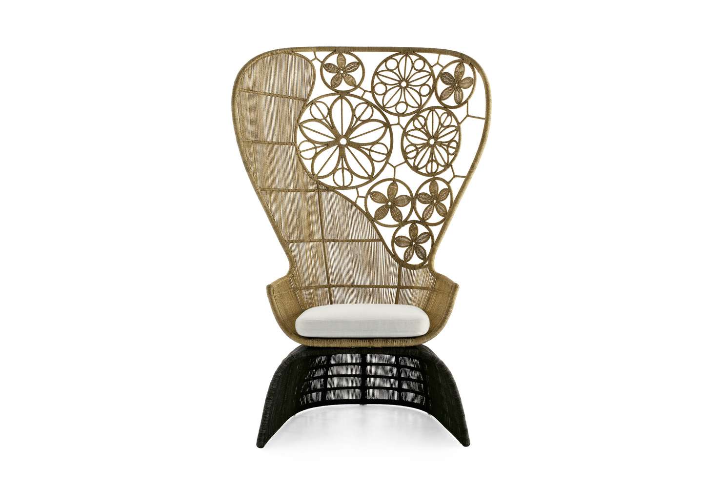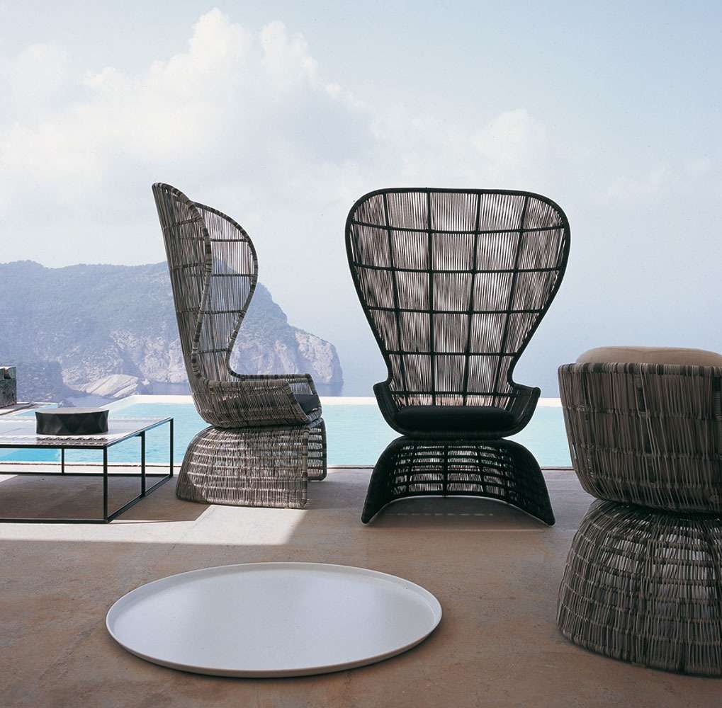 <Crinoline(クリノリン)>は、包み込むような女性らしいラインが特徴で、19世紀のロマンチックなスカートを連想させるシリーズの屋外用チェアです。チェア、スツール、スモールアームチェア、アームチェアなど形・高さの異なるデザインを展開しています。アウトドアだけでなくインドアにも合うデザインです。