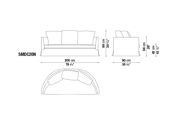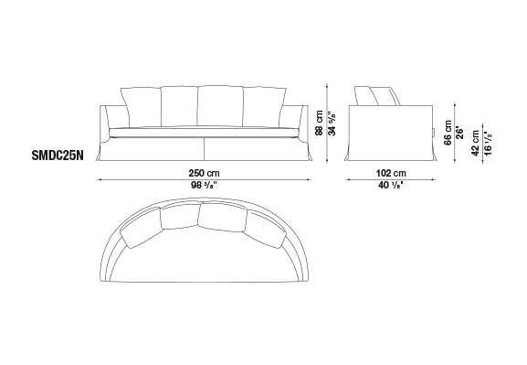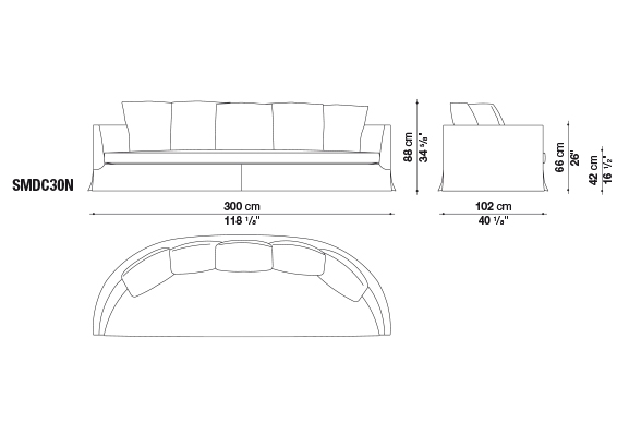半円の形状が特徴のソファは、3種類のサイズで展開されています。また同じ半円形で回転式のアームチェアもあり、リビングやベッドルームなど様々なシーンにおいてコーディネートしていただけます。