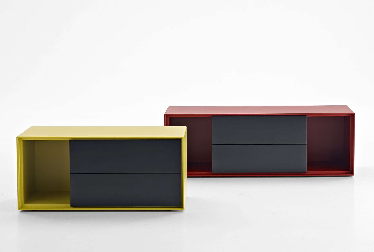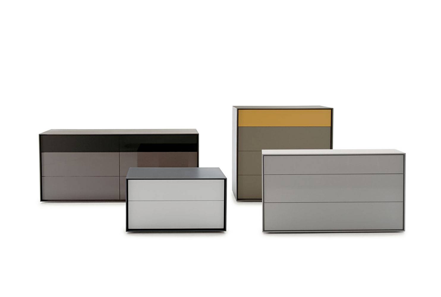 光沢とサテンカラーをゲーム感覚で組み合わせたダドの引き出し収納ユニットは、単色またはコントラストをつけたカラーコンビネーションが可能で、屋内のさまざまな場所に置けるよう多様なサイズを用意しています。ナイトテーブルから引き出しチェスト、新たに加わった7つの引き出しチェストまで、すべて引き出しの前面と比較して、トップと側面の奥行が深いのが特徴です。