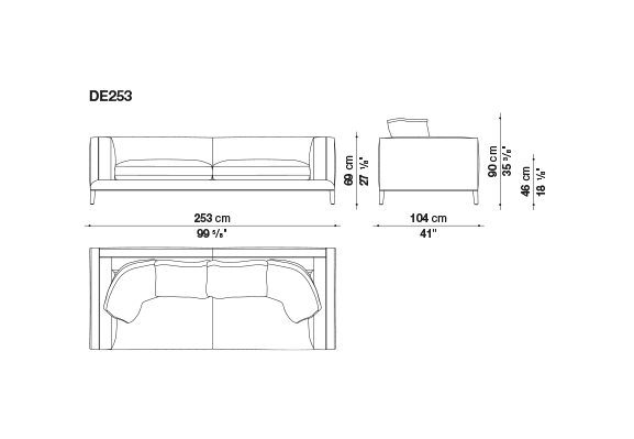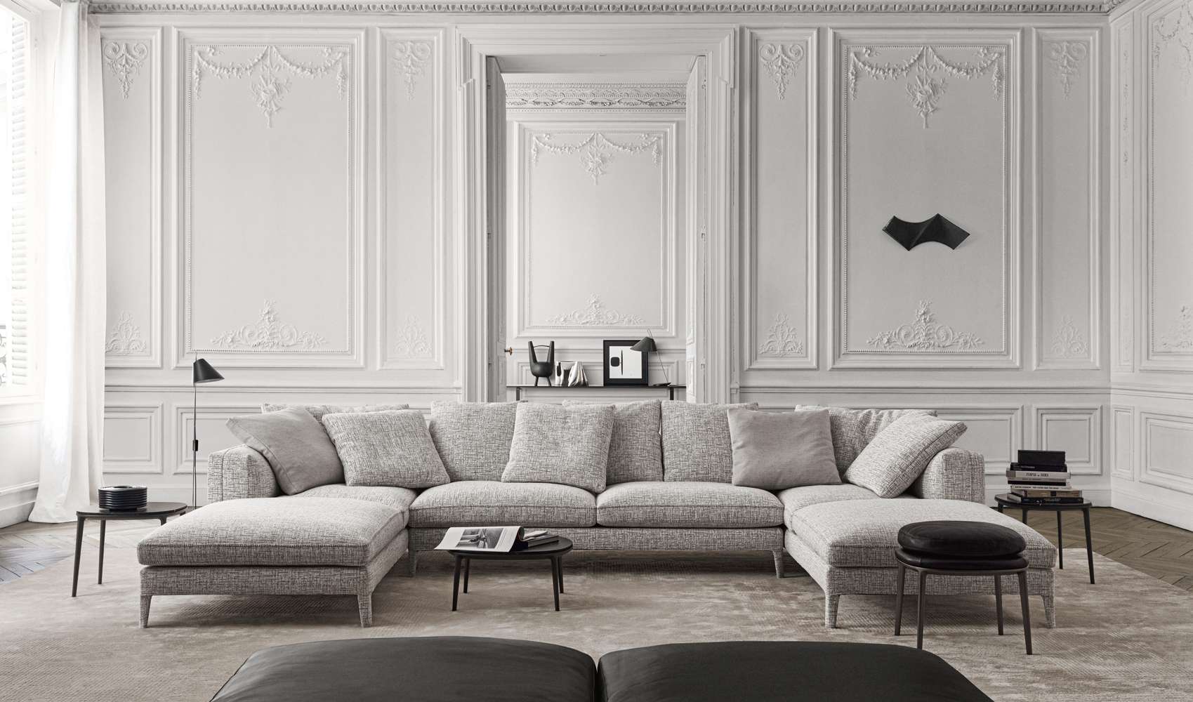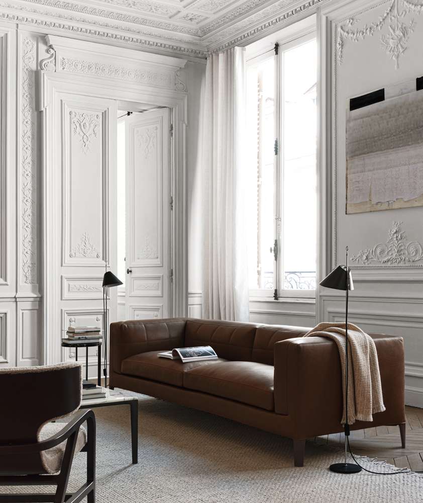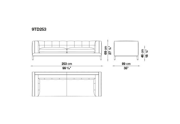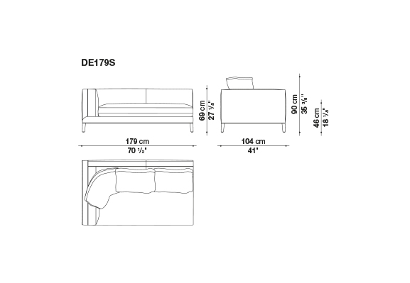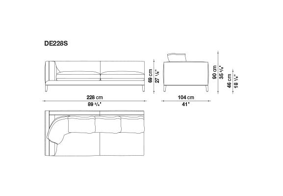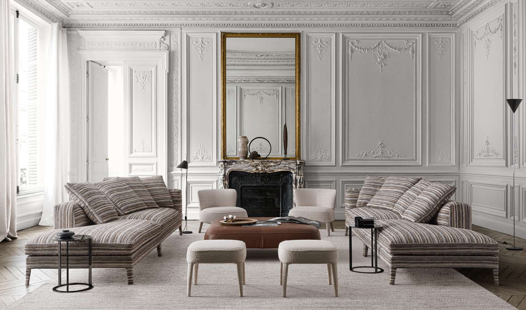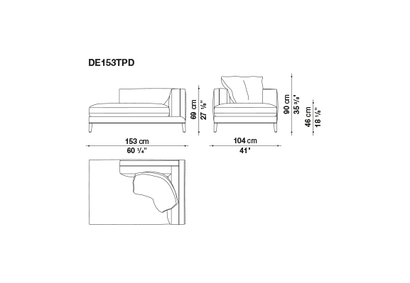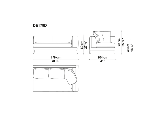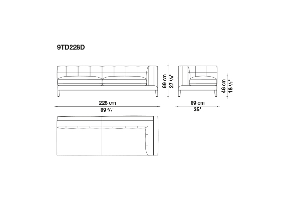 Dives Softは、様々なサイズと2種類の座面奥行きを持つ直線的なモジュール式のソファです。座面の奥行きが狭いバージョン(89cm)は、アームレストと背もたれが、外側はスムース、内側はクラシックなチェスターフィールドスタイルのキルティングという、2種類の異なる張り方をしているのが特徴です。洗練されたディテールを楽しむことができます。座面の幅が広いバージョン(104cm)では、張地は全体的にスムースで、柔らかいダウンフェザーのクッションが付いており、よりくつろげるソファになっています。どちらのバージョンにも共通して、ソフトでたっぷりとしたパッドが入っており、最高の座り心地を実現しています。張り地には幅広い種類のファブリックとレザーが用意されており、ファブリックバージョンでは装飾的な同色または対照的なブランケットステッチ、レザーバージョンではエレガントな「エンベロープステッチ」など、特別なクチュールディテールが施されています。脚部は、ファブリックまたはレザーで覆われているか、ブラックシェラック仕上げが用意されています。