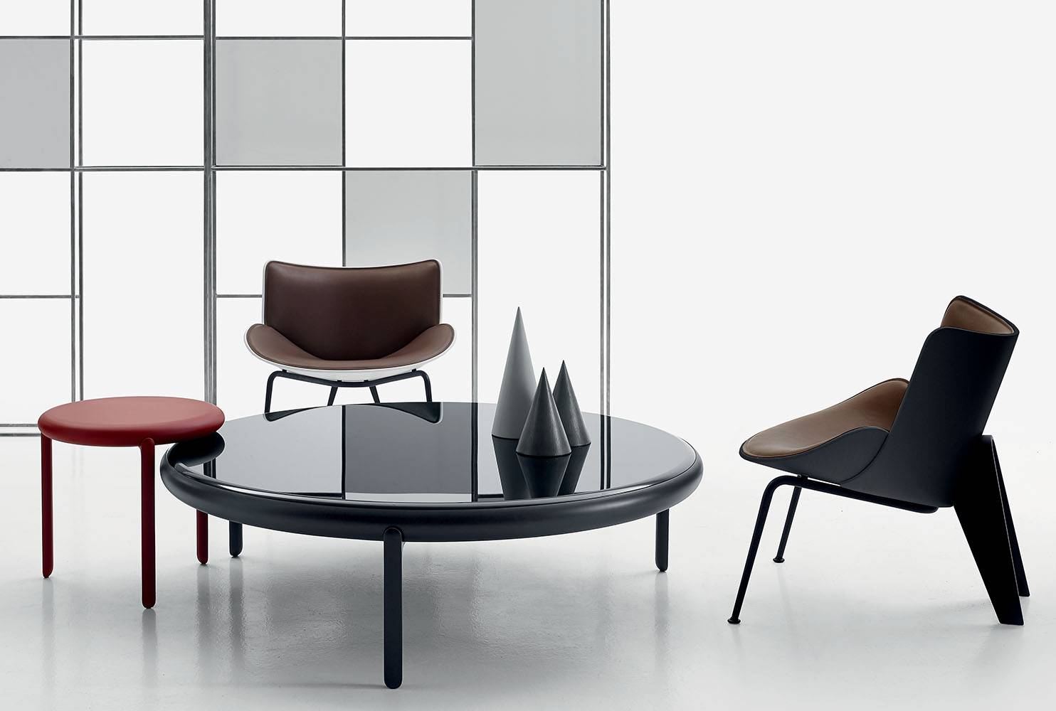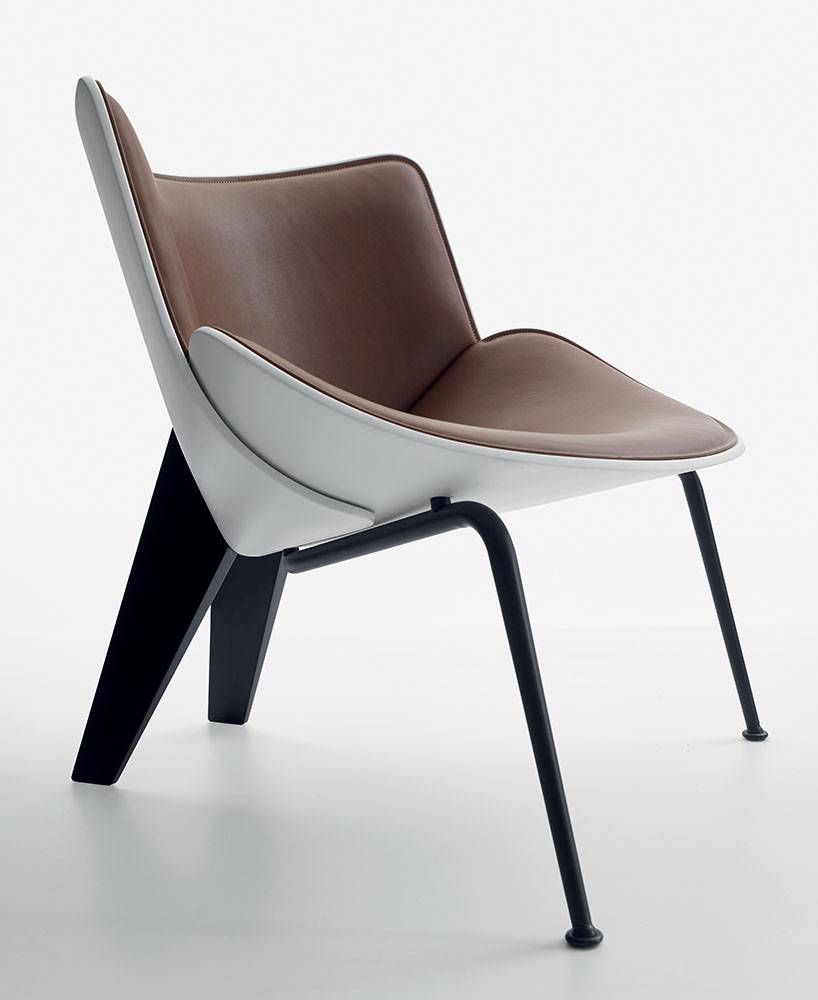 小型のアームチェアであるDo-Maruは日本の武士が身につけていた鎧にちなんで名付けられました。鎧とは武士の身体を守る為に考案された防具であり、綺麗に装飾された何枚もの厚い革のプレートで作られています。この商品は2014年に製作された回転アームチェアであるAlmoraと同様にドーシ レヴィエンによってデザインされました。シェル部分は数層で構成されており、柔らかい座り心地を実現する為に布地や革張りで仕上げられています。またダイキャストアルミニウムの背もたれは、円錐の輪郭を大胆に強調しています。一方、前部はブラッククローム塗装若しくはピューター塗装が施された筒状のメタルであり、シェル部分のカラーであるホワイト、アンスラサイト、トルトーラと調和するように工夫されています。