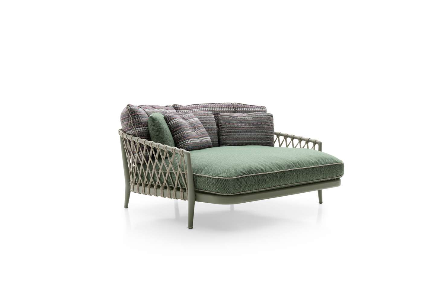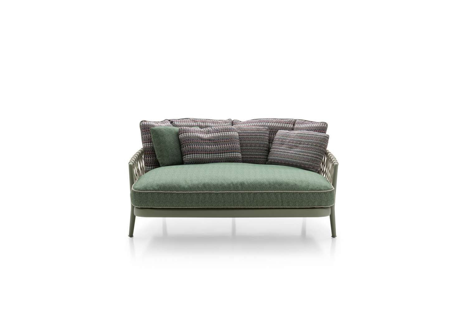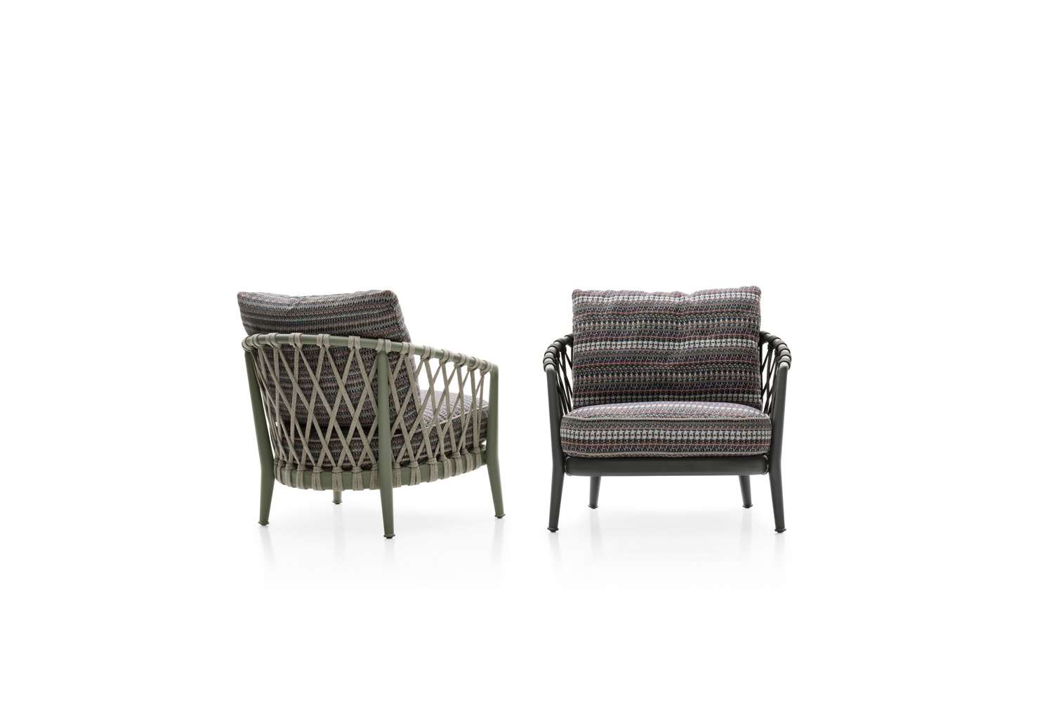 2017年に発表して好評を博したソファ、アームチェア、スモールチェアのEricaコレクションに、新しいソファが加わりました。これまでと同様に特徴的なカーブを描く背もたれとインターレースをベースにしながら、より深い座面と生活感のある外観を実現しています。ソファのサイズは、座面の深さが96cmの170cmと216cm、座面の深さが140cmの153cmの3種類で、クッションの張り地を変えることで、よりソフトでナチュラルな印象を与え、より魅力的なソファとなっています。ダブグレー、アンスラサイト、またはセージ色のフレームとナチュラル色のインターレースという珍しい色の組み合わせには、さまざまな色調とデザインのクッションカバーが用意されており、それぞれがコーディネートされています。また、革新的なインターレースを施した背もたれを持つアームレスト付きのチェアもあります。
