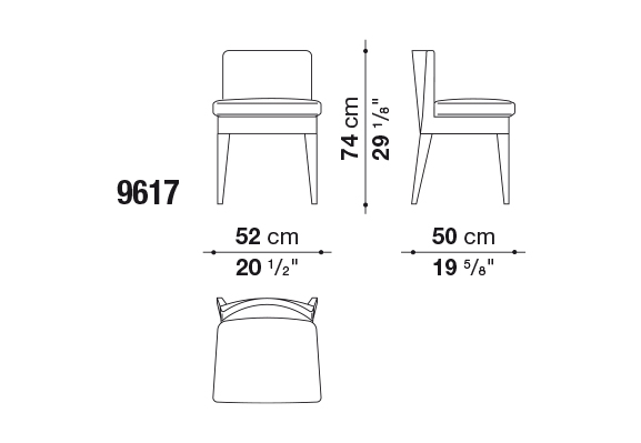 ダウンクッションを使った柔らかいシート、そして脚部には明るいクロームまたはブロンズニッケル塗装のスチールを採用しています。このラインには脚部を無垢材でカバーしたバージョンもあります。