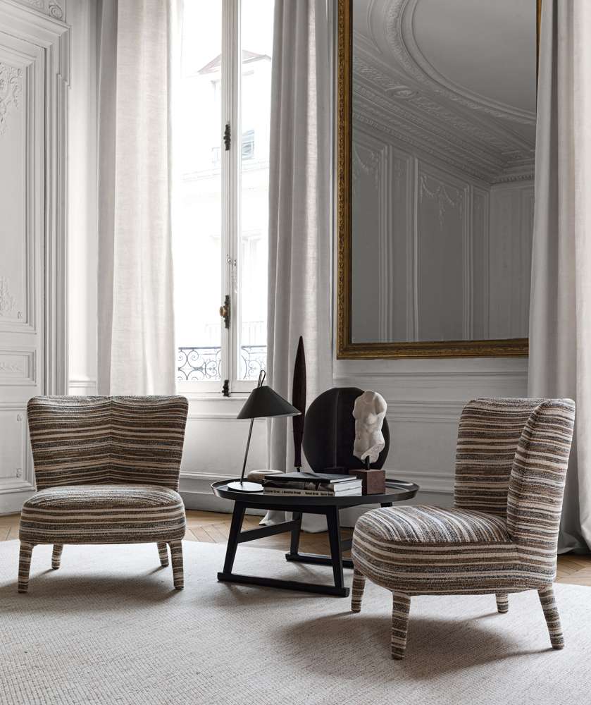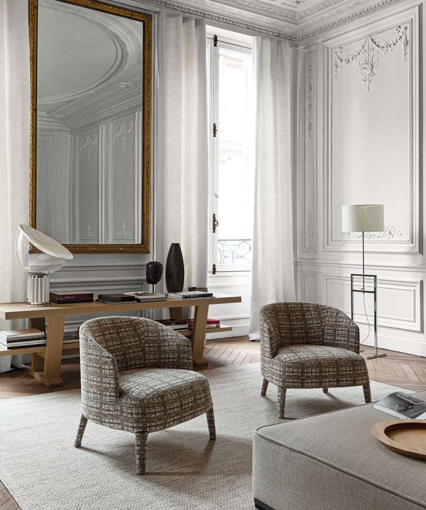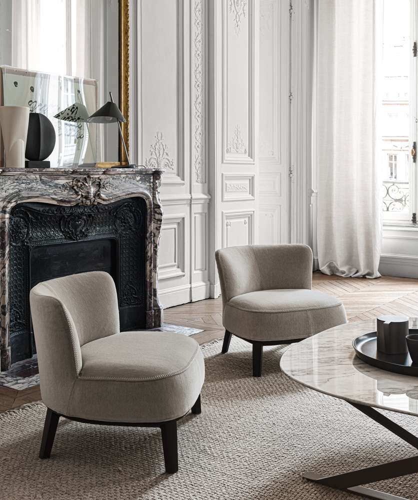 Febo<フェボ>は、アームレストのない大きな背もたれが特徴的な伝統的なデザインを受け継いだソファとアームチェアのシリーズです。ソファには、ローシートまたはハイシートのクッションを備えた小型のものと、大型のものの2つのサイズがあります。このシリーズは、背もたれの高さや低さ、包み込むような形とブランケットステッチが特徴のエレガントなアームチェアです。