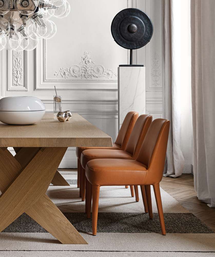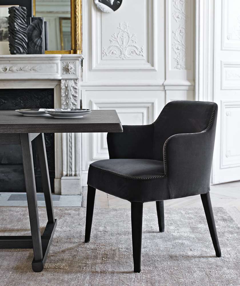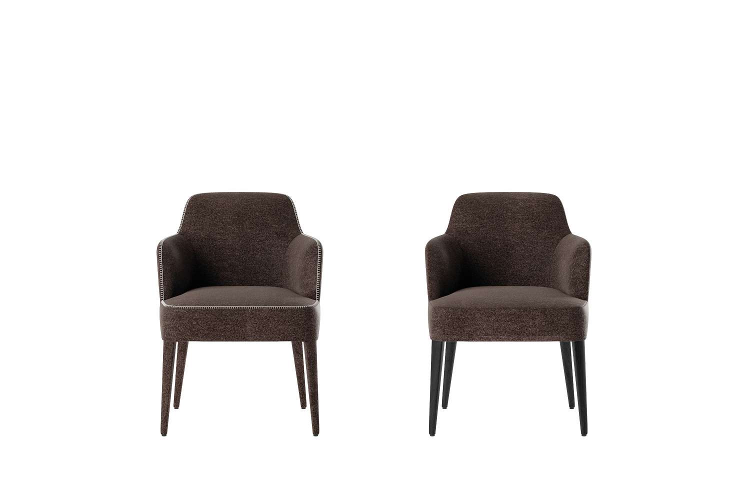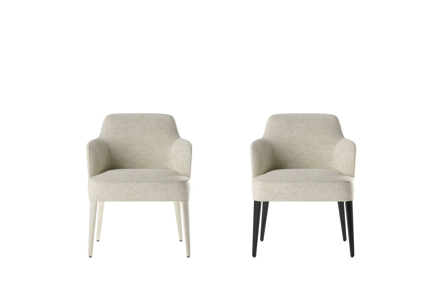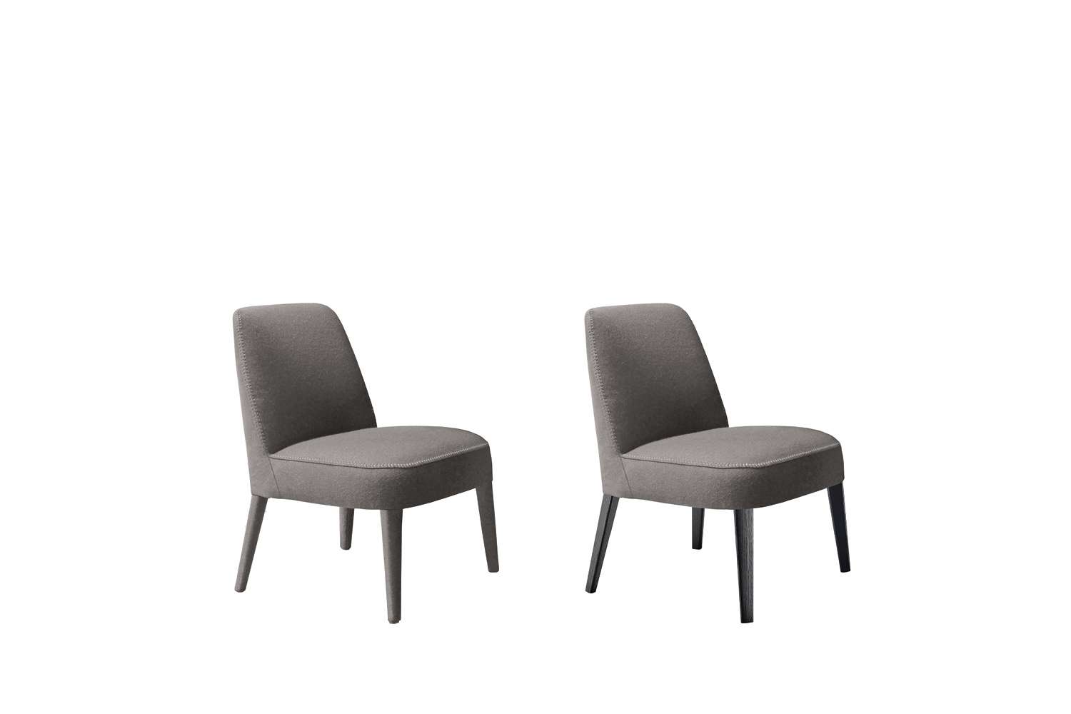 ソファ、アームチェア、シェーズロング、ベッドなどのFebo<フェボ>シリーズに加えて、チェアにも3つのバージョンがあります。1つ目はクラシックで非常に快適なプロポーション、2つ目はティーテーブルとの組み合わせを考慮して高さを6cm低くしたもの、そして最後の1つは背もたれが高く、より包み込むようなラインを持つものです。すべてのチェアには、ブランケットステッチが施されたファブリックまたはレザー素材と、グレーオーク、ライトオーク、ブラックオークの脚部が用意されています。