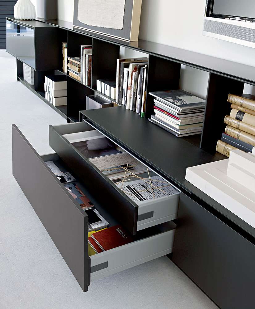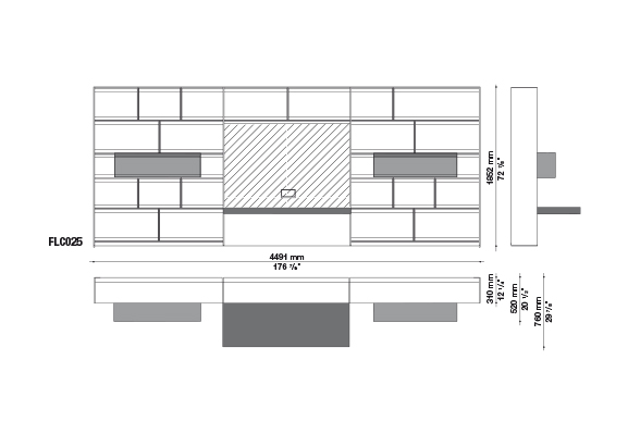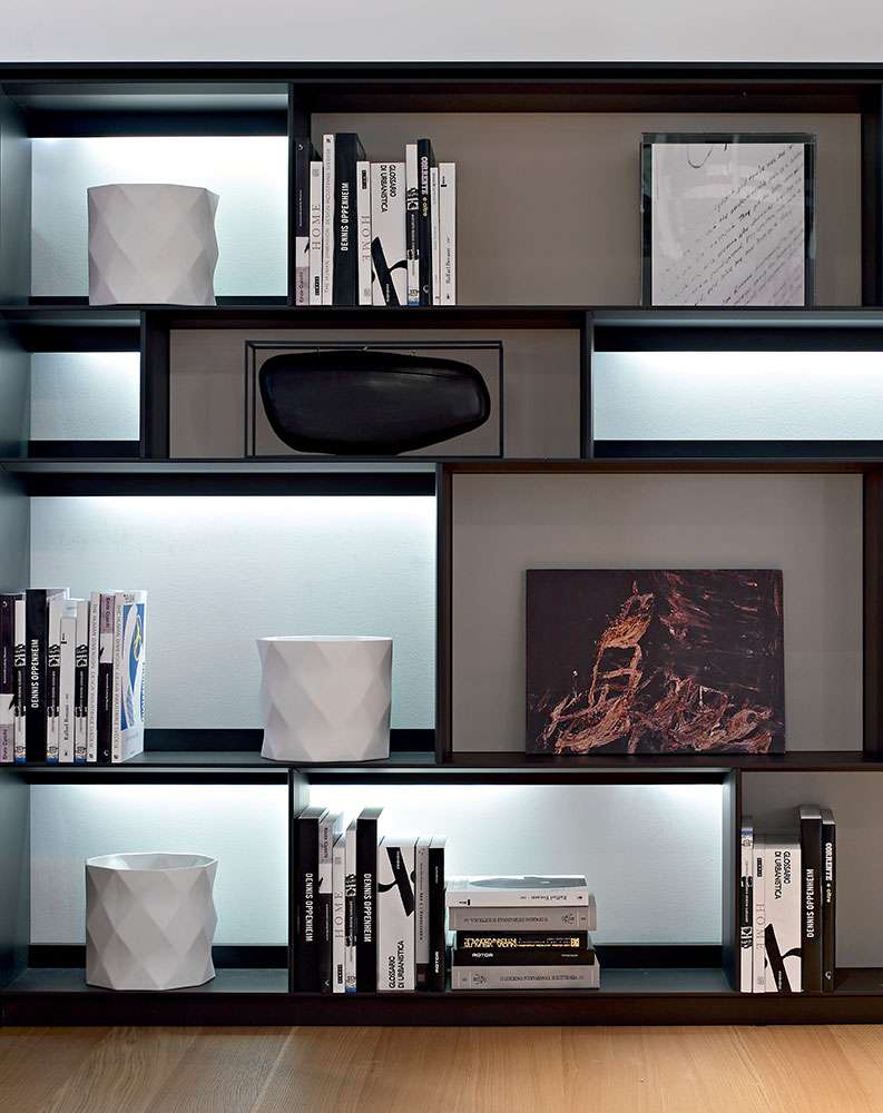 Flat.Cは、壁面収納を、再構成や再構築が可能なオープンシステムとして解釈しています。先進的でフレキシブルなFlat.Cは、マルチメディアシステムの進化に合わせて、空間を自由に活用する方法を提案しています。Flat.Cのストレージユニットは、構成要素を整理し、比率を制限するモジュラーグリッドに基づいて、ほぼ無限の異なる構成により、スペースを最大限に活用することができます。Flat.Cは、本、テレビ、音響機器を最小のスペースに収納するためにデザインされました。Flat.Cはその名の通り、奥行きと厚みを浅くしたソリューションです。奥行きが25cmしかないため、棚板や側面の厚さは最小限に抑えられています。また、接合部が目立たないのも特徴です。これにより、部屋にさりげなくフィットしながら、エレガントに収納の目的を果たすことができる汎用性の高い家具プロジェクトとなっています。