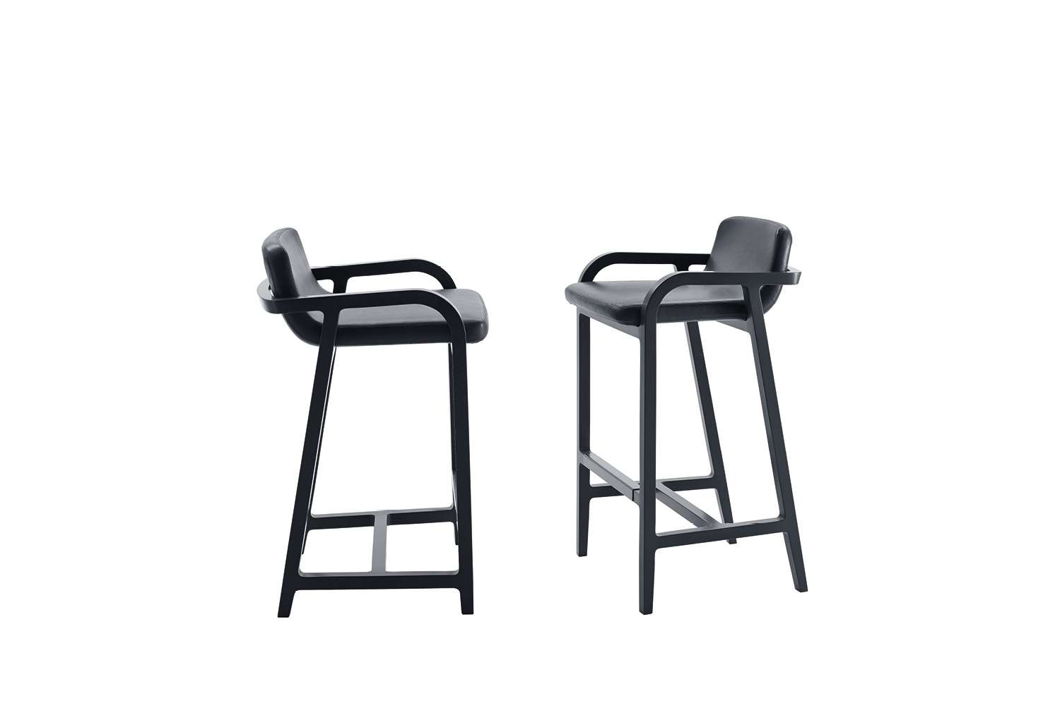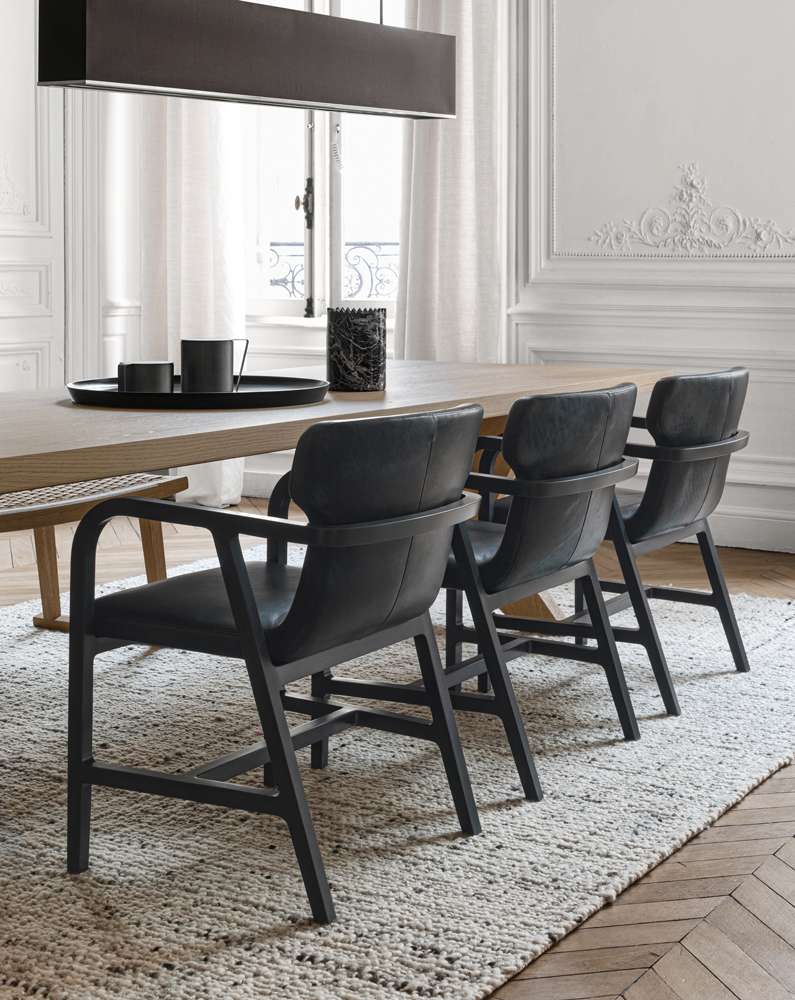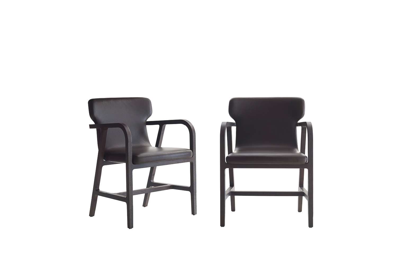 独特の存在感を帯びながら、伝統的なソファの横に置いてもフィットする、フルゲンのスモールアームチェアに新しいタイプが加わりました。ブラック、レッド、ソイアのシェラック塗装仕上げで、巧みな手工芸のアイディアが表現されています。スタイルからは、伝統的な曲げ木のトーネットチェアを連想させますが、東洋的なニュアンスは出さず、木の滑らかな手触りを明確に伝えています。シートから背もたれにかけてのシェルの外側はフレームのように塗装がされ、内側は革張りまたは布張りでカバーされています。