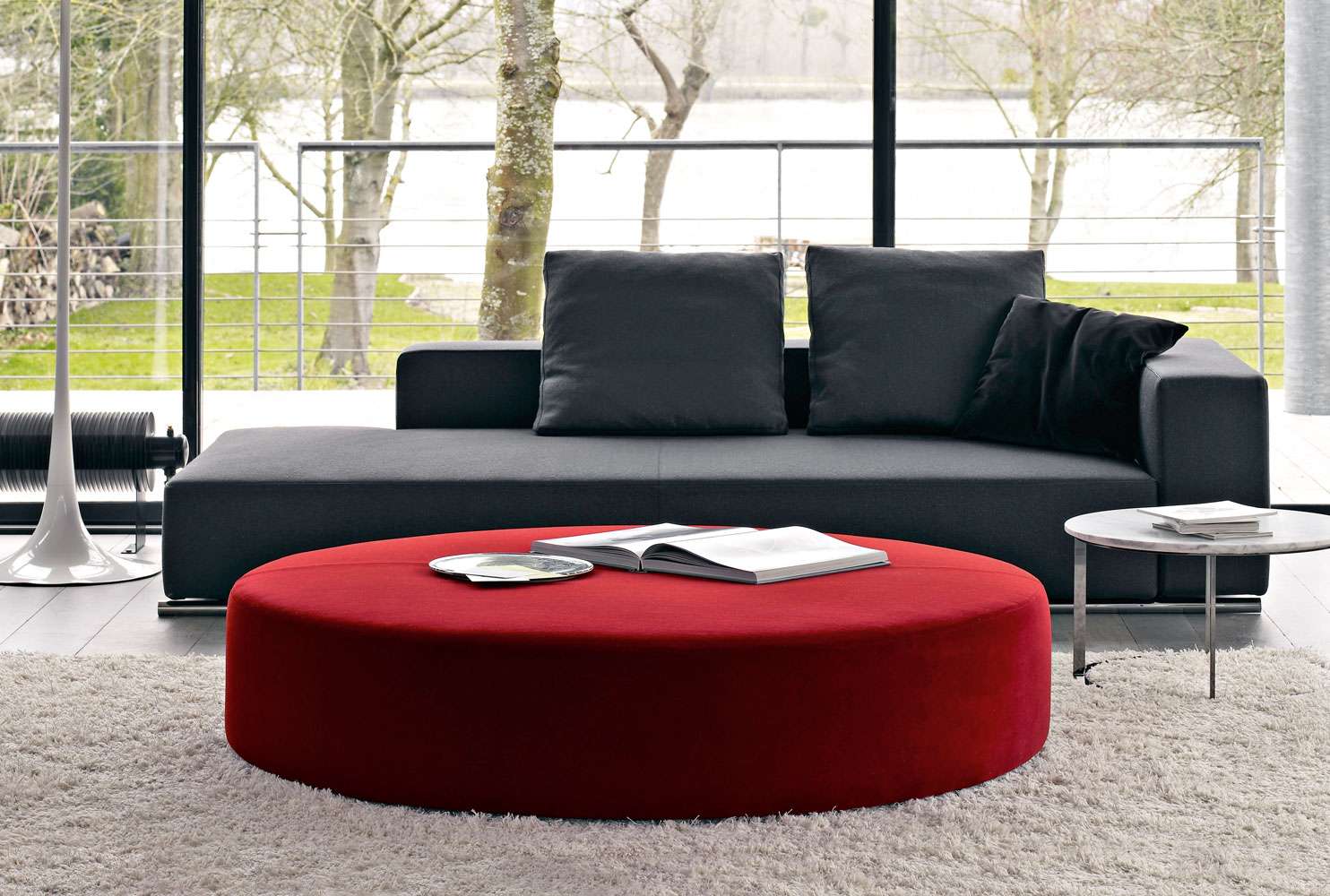 2サイズ展開の大型ラウンドオットマンは、トレーを置くことでテーブルのように使用することもでき、他のソファなどとの相性も抜群です。