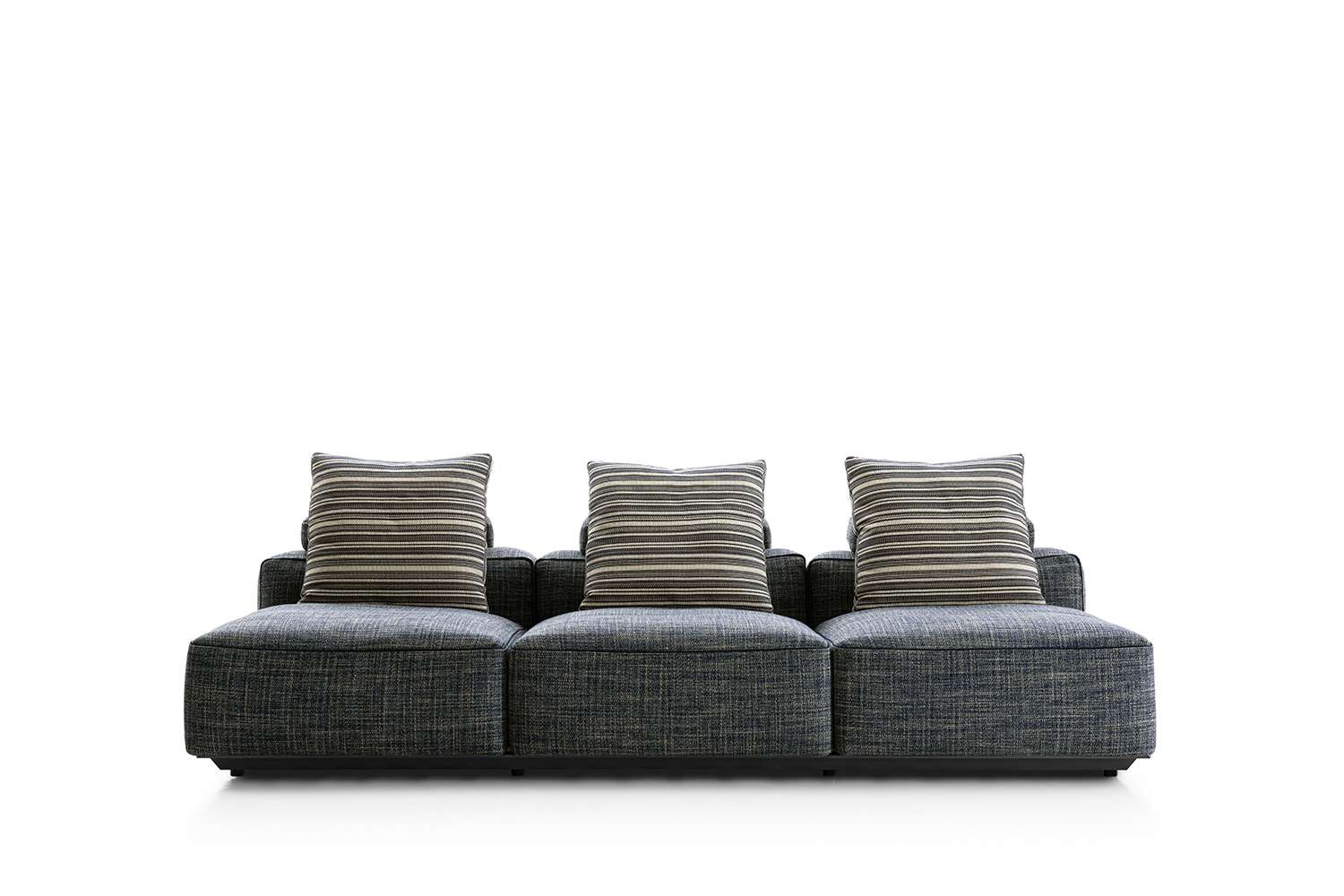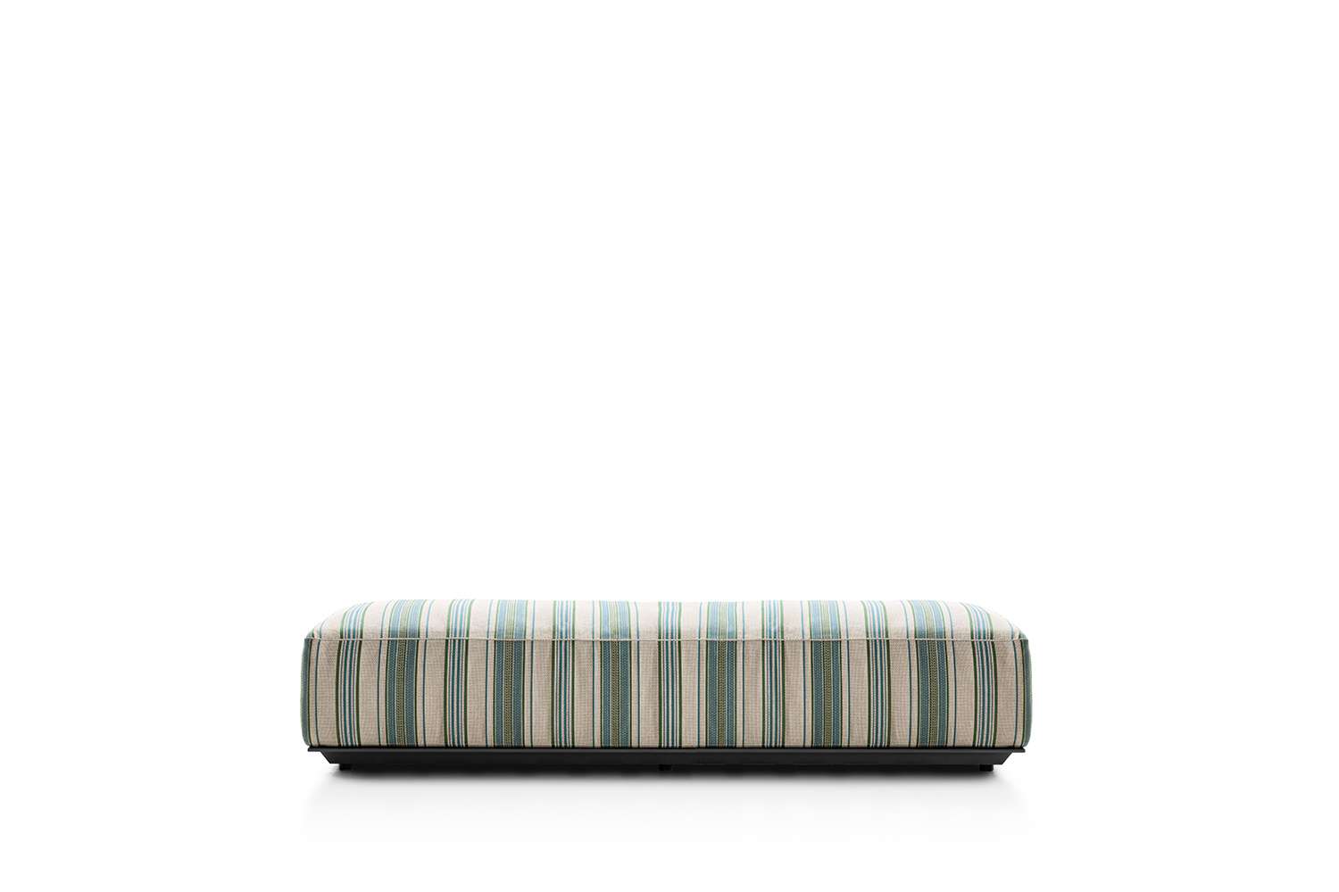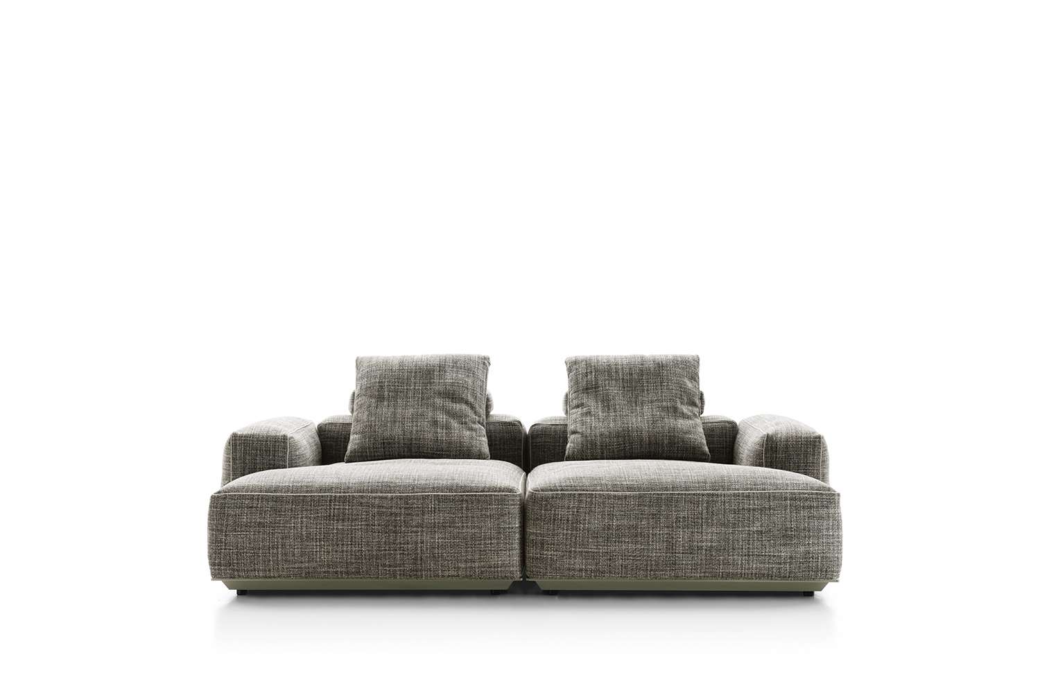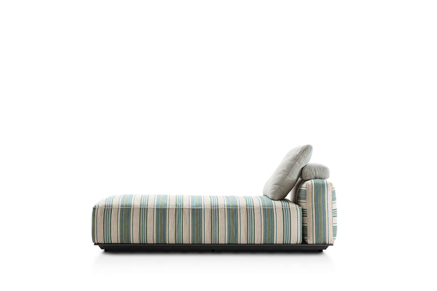 プラットフォームは8つの幅サイズ、2つの奥行サイズがあり、アームレストとバックレストの高さも2種あります。奥行のある方の座面にさらなる心地よさを与えるため、低いバックレストは追加のヘッドレストクッションで引き上げることもできます。追加のクッションには多種のサイズがあり、デザインと色彩の組み合わせは無数です。