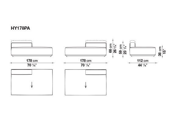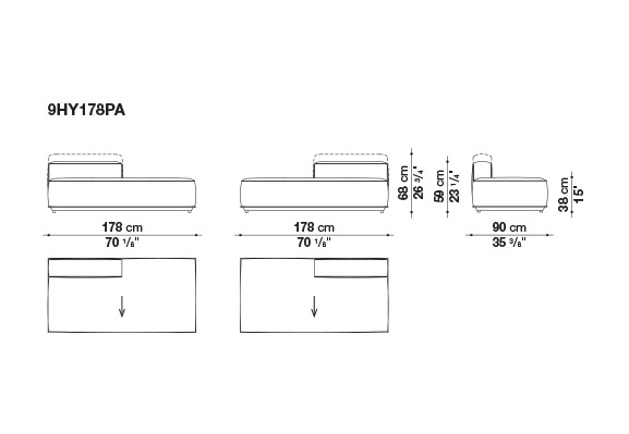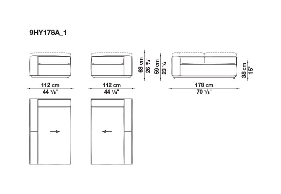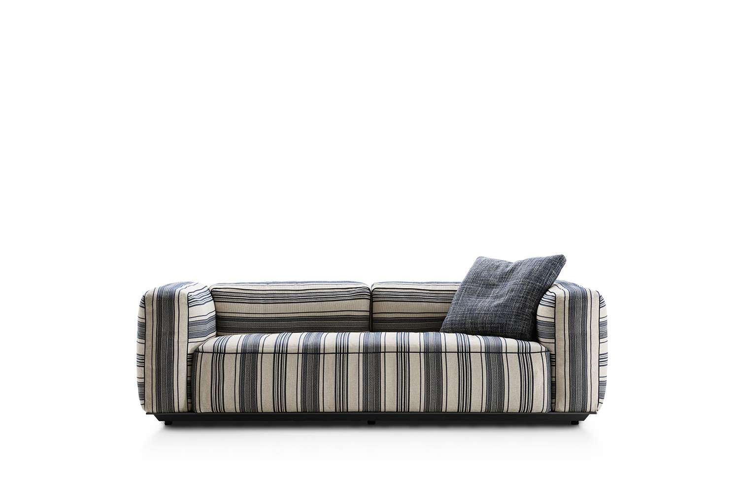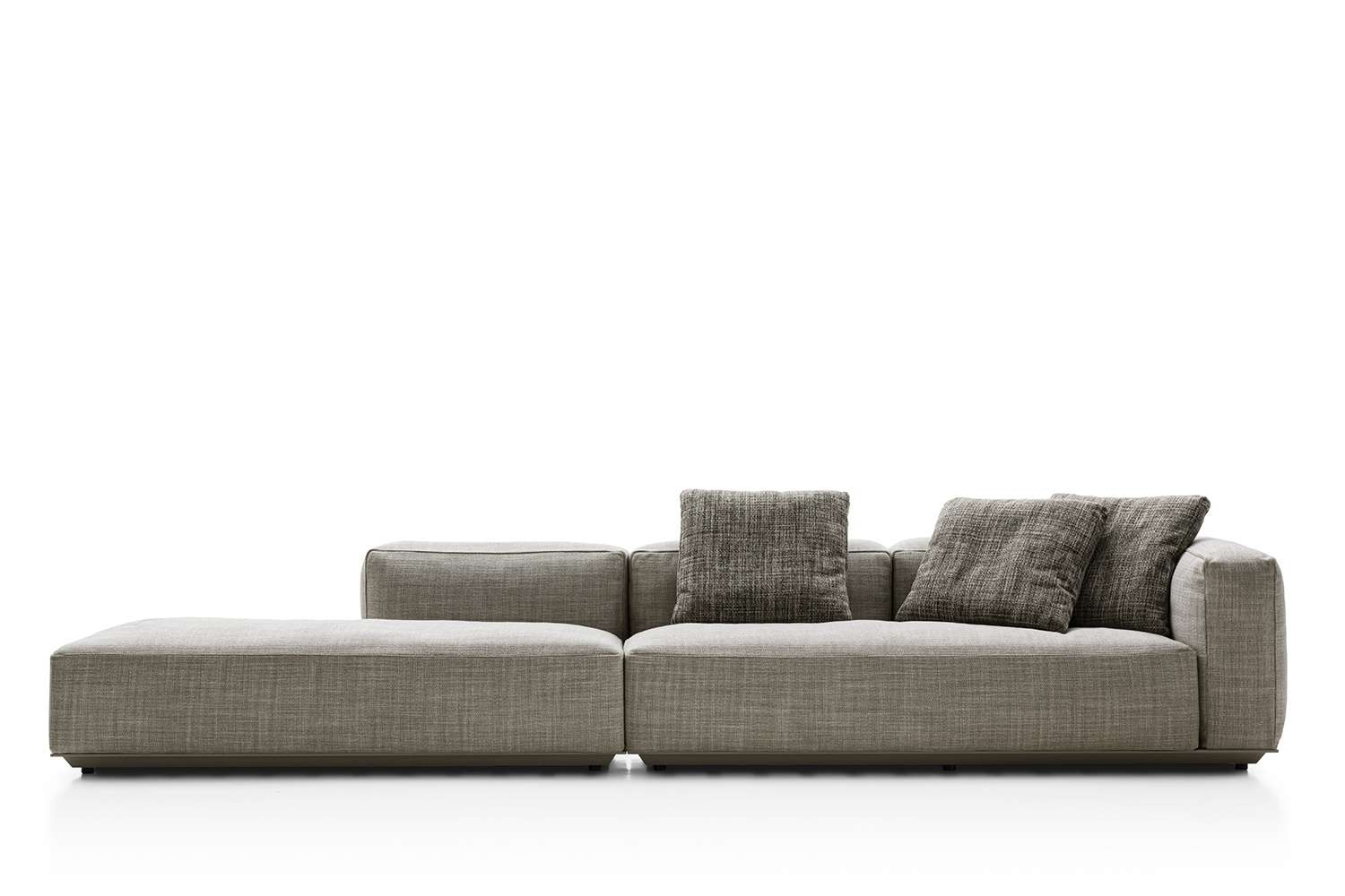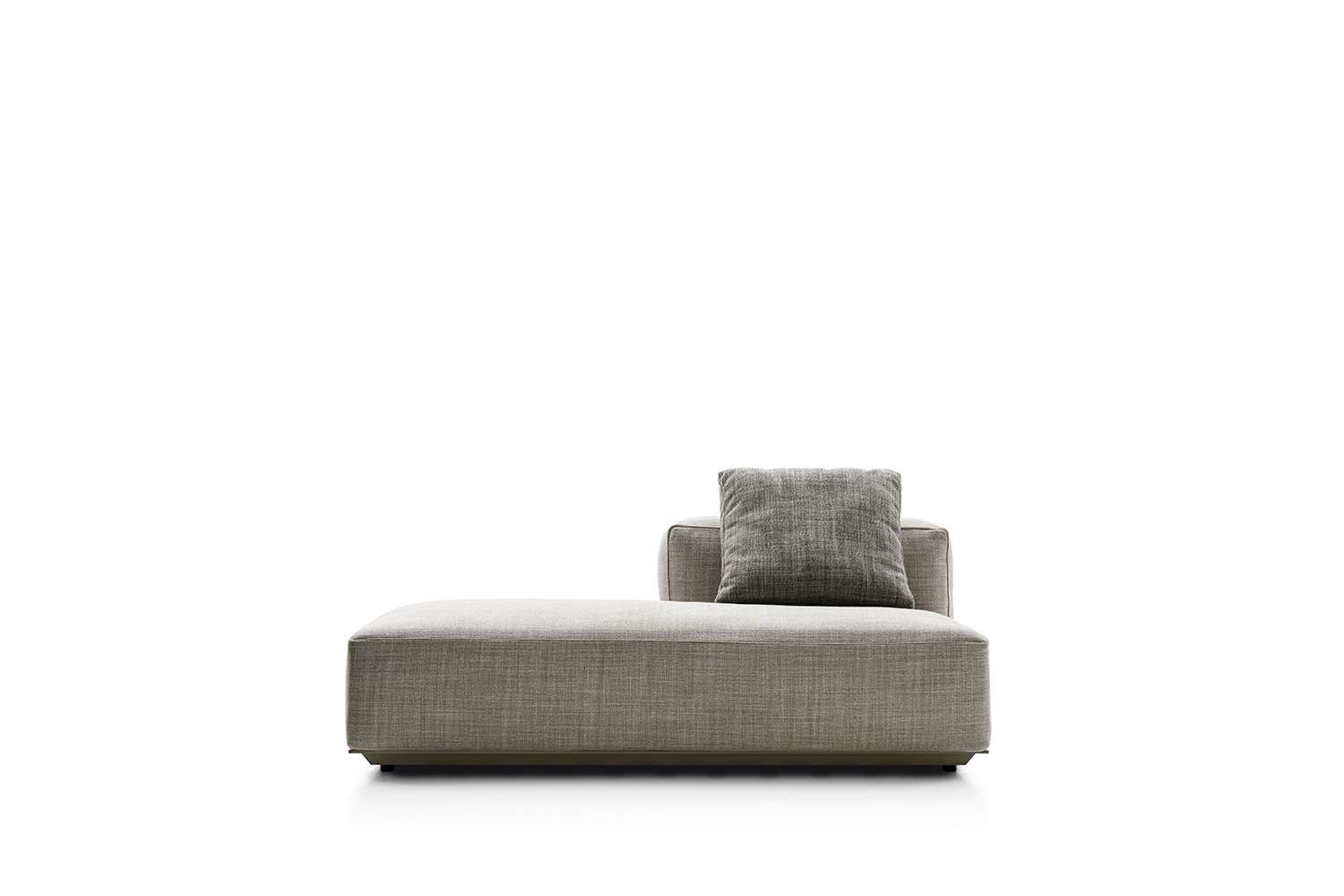 プラットフォームは8つの幅サイズ、2つの奥行サイズがあり、アームレストとバックレストの高さも2種あります。奥行のある方の座面にさらなる心地よさを与えるため、低いバックレストは追加のヘッドレストクッションで引き上げることもできます。追加のクッションには多種のサイズがあり、デザインと色彩の組み合わせは無数です。