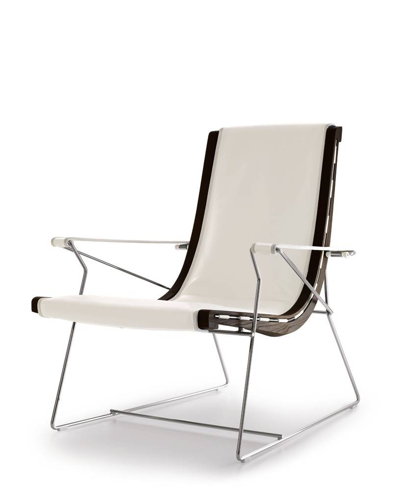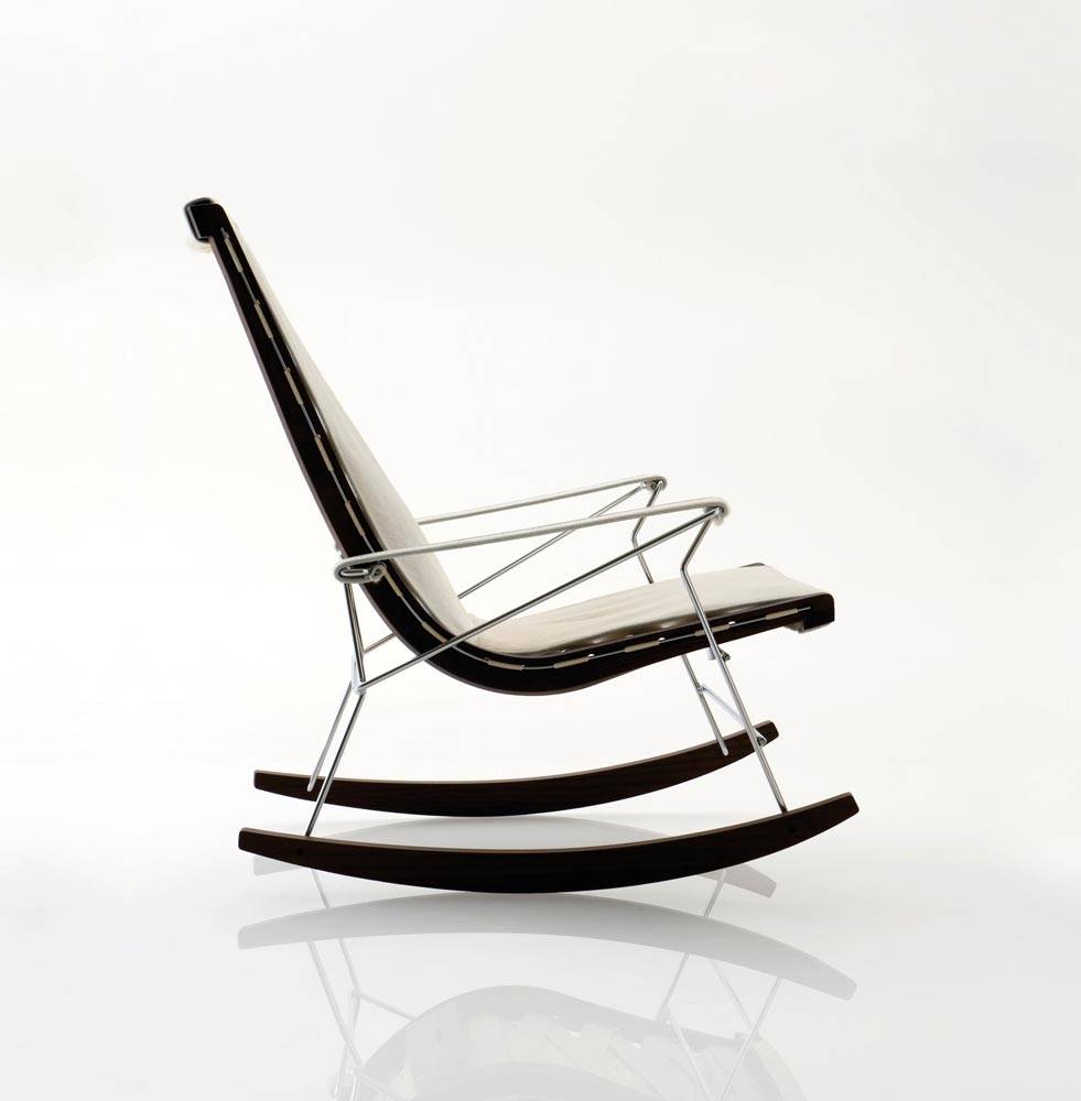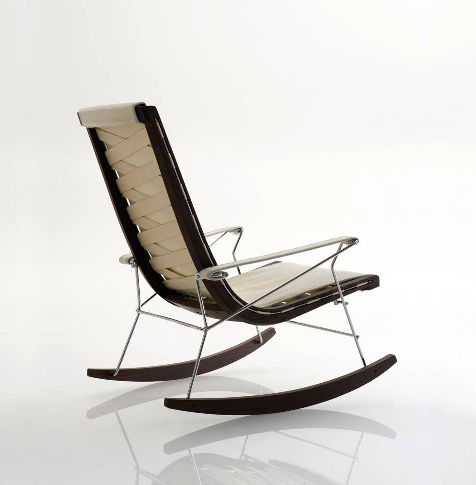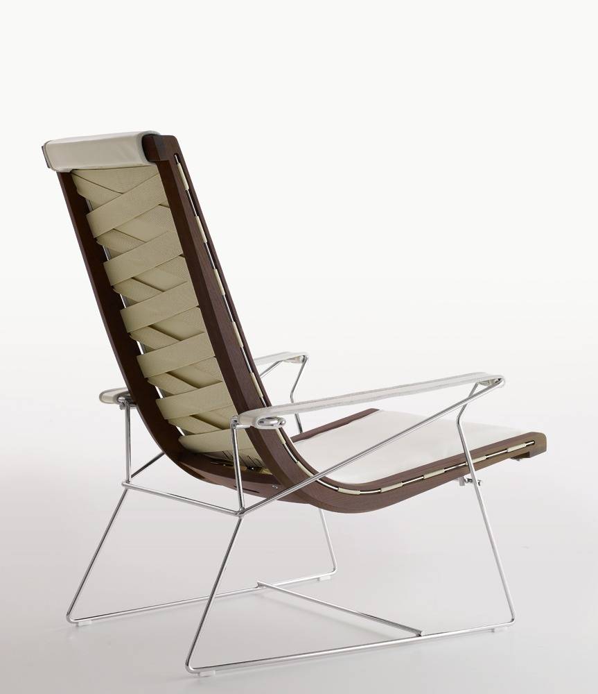 アームチェアのJ.J.は、リラックス感を重視したハイバックチェアと、楽しい会話を演出するローチェアの2サイズ展開です。2種類のモデルを取り そろえており、スチールロッドのストラクチャがサーモアッシュのフレームを支えているタイプと、フレーム全体がサーモアッシュのタイプがございます。 さらに、J.J.アームチェアの個性を際立たせるロッキングチェアタイプも展開しています。シートは、木製のフレームに十字に交差して取り付けられたベージュ、ブラック、グリーンのバンドと、木製のフレーム全体に張りめぐらされたれレザー、ポニースキン、または厚手のレザーフレームと組み合わさったファブリック地のクッションで構成されています。ハイバックチェアとロッキングチェアには、レザーのカバーリングにモンゴリアン・ラムの長い毛 皮をお取り付けいただくこともできます。さらに、団らんのひとときを盛りたてるミディアムバックチェアと、リラックス感をより追求したヘッドレスト付きハイバックチェアを新たに展開し、ひし形の模様があしらわれた新デザインでラインナップを広げています。フレームに取り付けるポリプロピレンのバンドにはアームレストと同じトルトラ、ブラック、オレンジの3つの新色が展開されています。