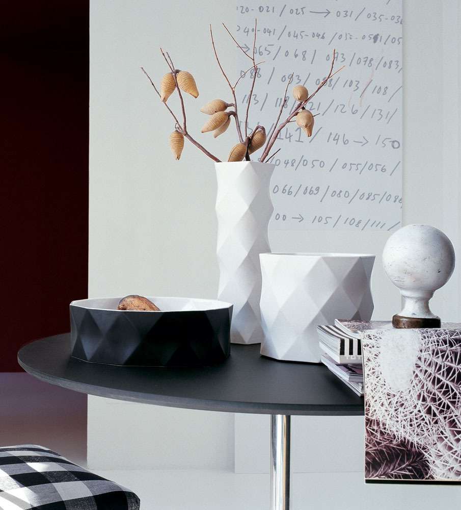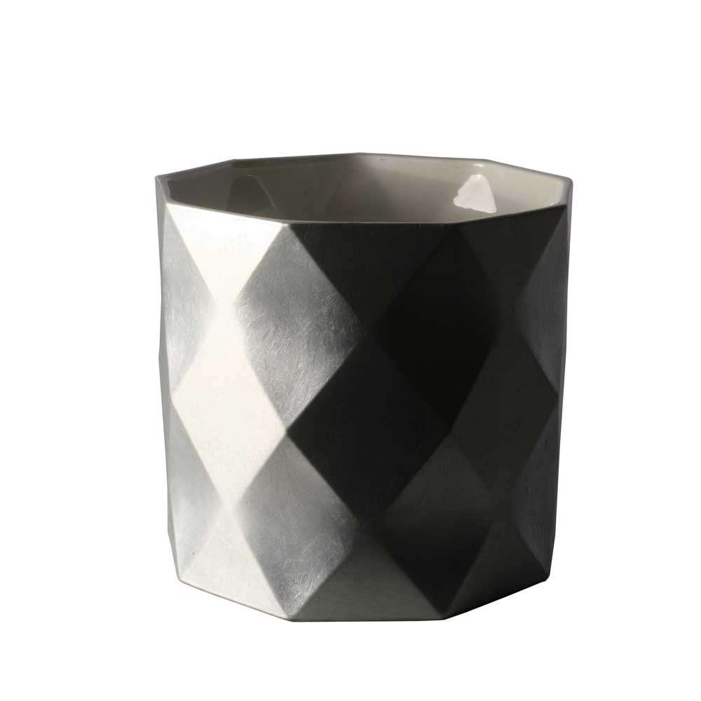 ニコール・アビジャーのJoker<ジョーカー>は、金箔、銀箔、そしてクラシックな黒と白で仕上げられており、表面に施されたファセットが特徴的です。