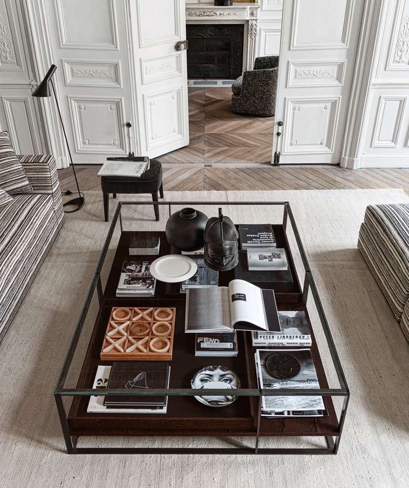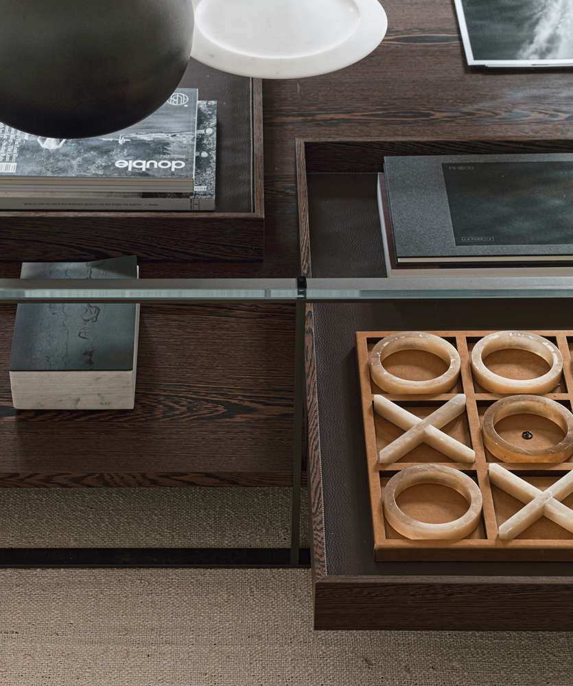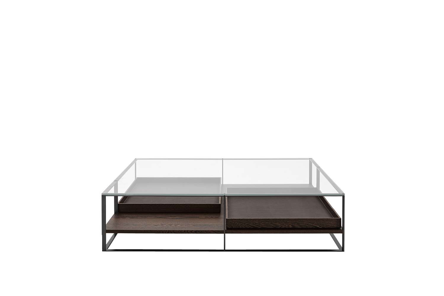 大切なコレクションを優雅に保管、展示するためのキャビネット、ディスプレイエレメント、ローテーブルのシリーズです。住宅や商業施設に最適で、部屋の中央に置いても、中身を見たり、取り出したり、簡単に再配置したりすることができ、完璧なスタイルを保つことができます。天板には透明度の高いエクストラクリアガラスを使用し、塗装を施したメタルフレームにはブロンズニッケル、ブラッククローム、グラファイト、アンバーといった洗練されたカラーを採用しています。棚板、引き出し、トレイ(トレイはコロニアルまたはダークブラウンのレザーライニング付き)は、ナチュラルウェンゲとオークの2種類からお選びいただけます(ライトオーク、ブラックオーク、グレーオーク、スモークオーク)。