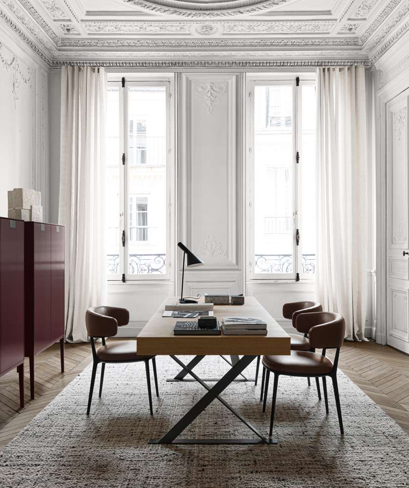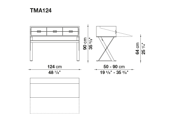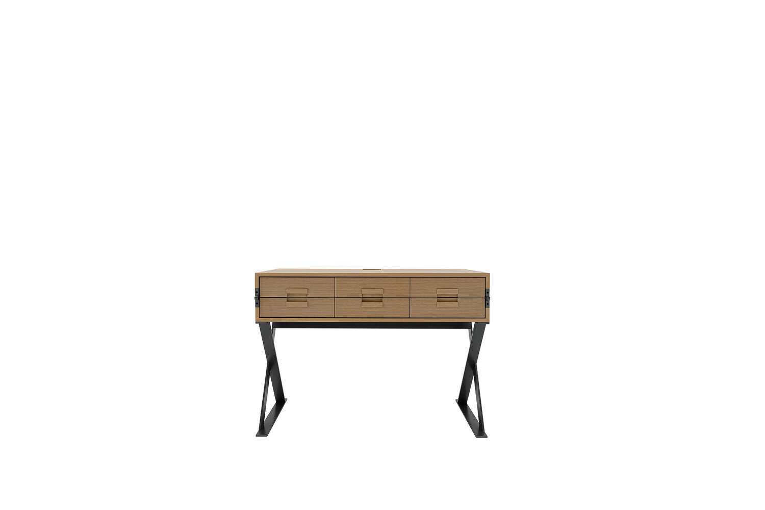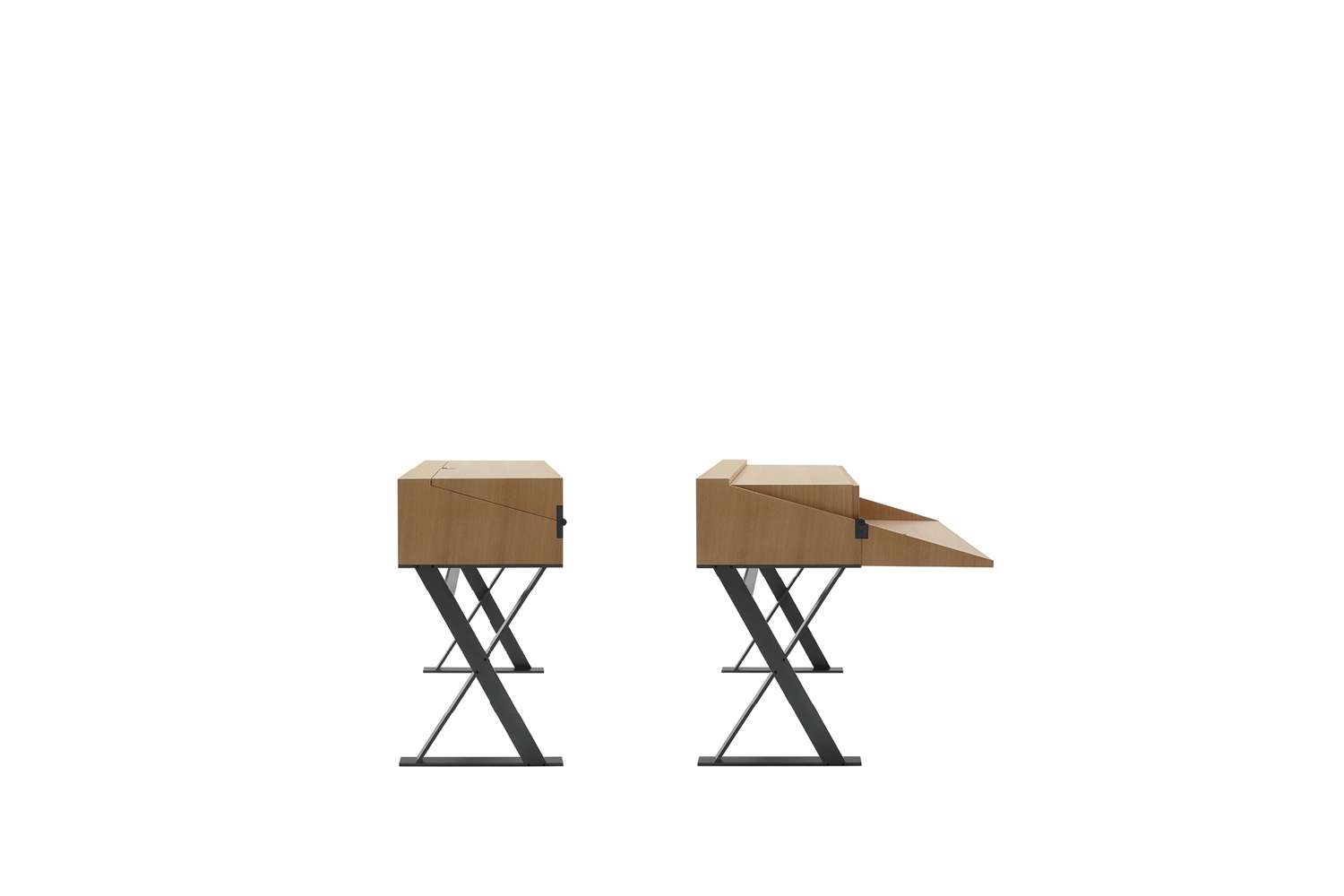 クラシックな"bureau(デスク)"を彷彿とさせるライティングデスクに、現代的なアレンジを加えたMax<マックス>は、家具職人の小さな宝石のような存在であり、細部にまでこだわった、貴重な宝箱のようなデスクです。このフリップトップデスクの最大の特徴は、特殊なX字型のスチール構造と、幾何学的なデザインの引き出しです。サイズは1種類、仕上げは木目調となっています。