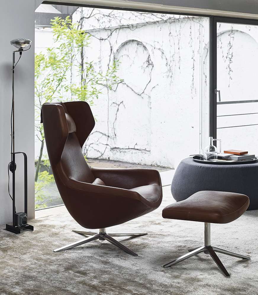 METROPOLITANに比べ、スリムなシルエットが特徴のMETROPOLITAN’14ラウンジチェアは、ローバックタイプとハイバックタイプの2種類よりお選びいただけます。いずれも回転式で、オットマンを合わせてお使いいただけます。ハイバックタイプにはヘッドレストを追加することもできます。流れるようなデザインがひときわ高じた一体型シートの姿形は、まるで微笑んでいるかのように、あなたを一時の休息へと誘います。頭まわりを囲むようなデザインのハイバックタイプは、時間を忘れて現実世界から離れたい方や、寛ぎながら仲間と会話を楽しみたい方に安心できる空間をご提供します。
