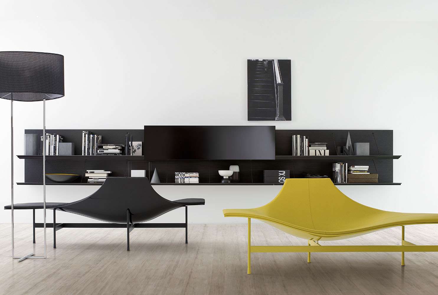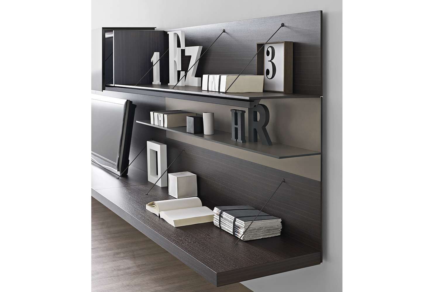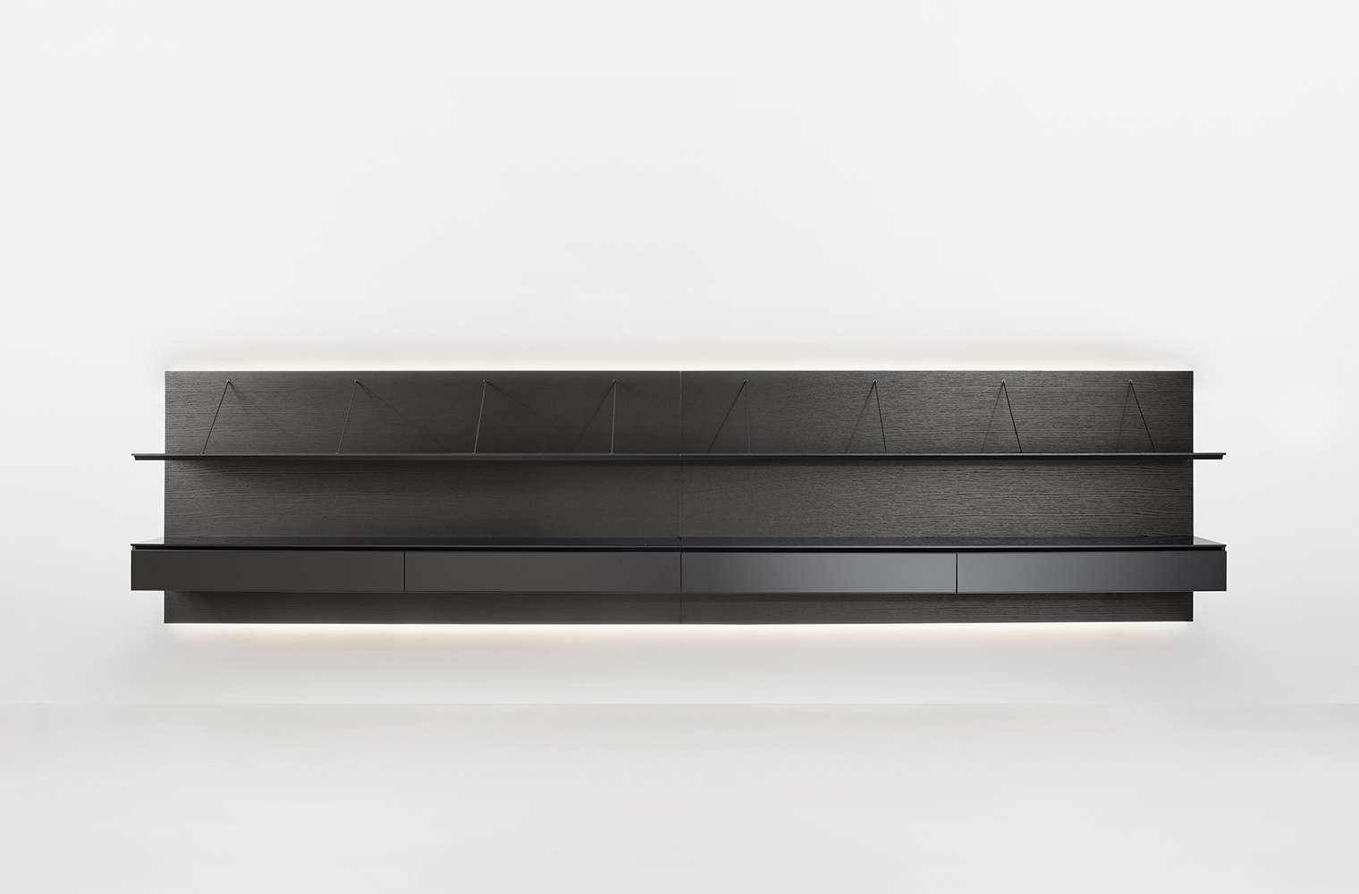 Pab<パブ>は、素材や技術を駆使した複雑なデザインから生まれたウォールシステムです。このプロジェクトは、シェルフという概念を中心に展開しています。これは、本棚や天板として使用するために、シートを半分に折り、軽い紐で固定するという非常にシンプルなアイデアに基づいてデザインされています。二つ折りにしたシートを紐で縛り、本棚や天板として使用するという非常にシンプルなアイデアに基づいてデザインされました。このように、シェルフを利用してストレージユニットのコンセプトを発展させ、シンプルな美しさ、実用性、使いやすさ、上質なディテールに基づいた現代的なデザインを実現しています。シェルフのほかにも、収納ニーズに合わせたトラディショナルなユニットや、引き出しの付いた多目的ベンチなどがあります。仕上げや色調の豊富な選択肢と、さまざまな家具の要素により、数え切れないほどの個性的な構成やソリューションを実現しています。