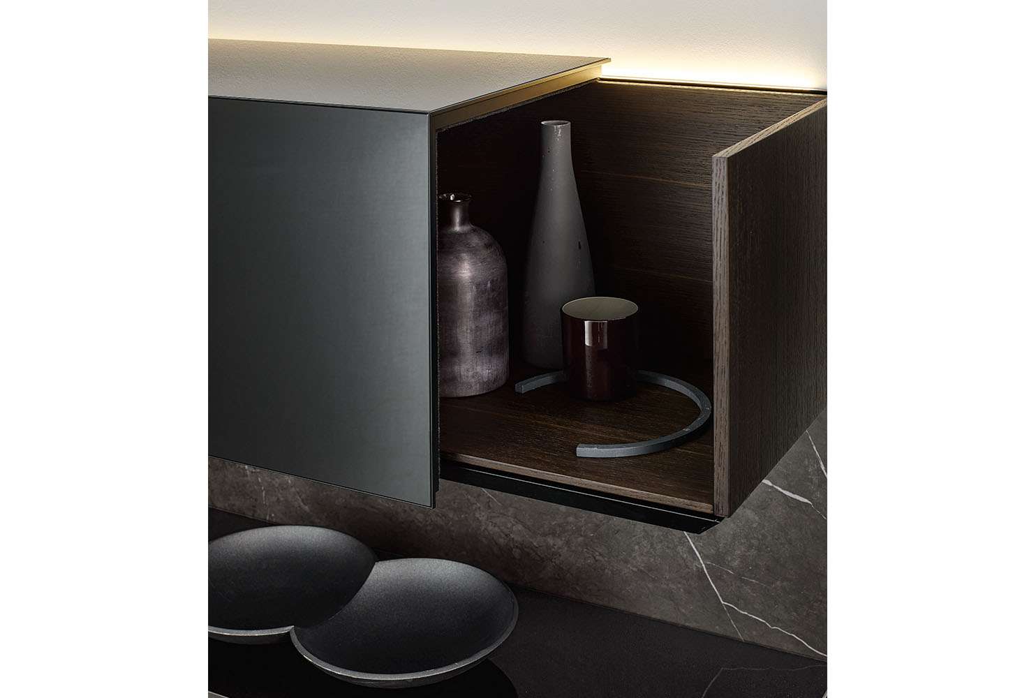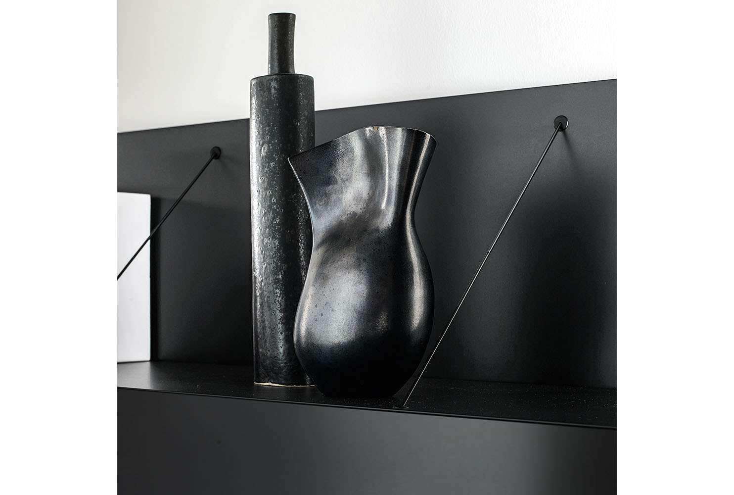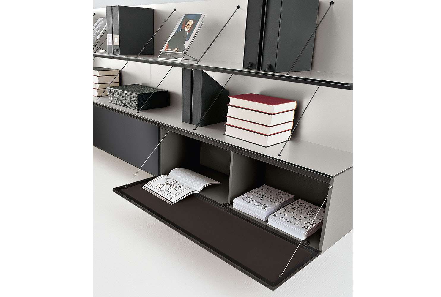 Pab<パブ>は、素材や技術を駆使した複雑なデザインから生まれたウォールシステムです。このプロジェクトは、シェルフという概念を中心に展開しています。これは、本棚や天板として使用するために、シートを半分に折り、軽い紐で固定するという非常にシンプルなアイデアに基づいてデザインされています。二つ折りにしたシートを紐で縛り、本棚や天板として使用するという非常にシンプルなアイデアに基づいてデザインされました。このように、シェルフを利用してストレージユニットのコンセプトを発展させ、シンプルな美しさ、実用性、使いやすさ、上質なディテールに基づいた現代的なデザインを実現しています。シェルフのほかにも、収納ニーズに合わせたトラディショナルなユニットや、引き出しの付いた多目的ベンチなどがあります。仕上げや色調の豊富な選択肢と、さまざまな家具の要素により、数え切れないほどの個性的な構成やソリューションを実現しています。