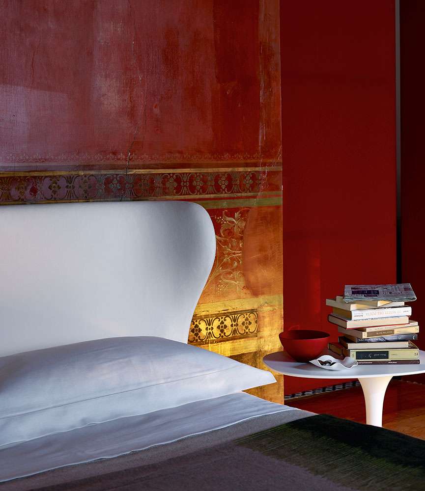 緻密なプロポーションを持つ連続した単一素材の形状。Papilio<パピリオ>アームチェアのように、美学は見事に解決されています。アームチェアに比べて円錐形の形状はわずかに縮小されていますが、サイドのデザインに取り込まれています。マットレスは外周とほぼ同じ高さに配置され、全体の剛性を高めています。