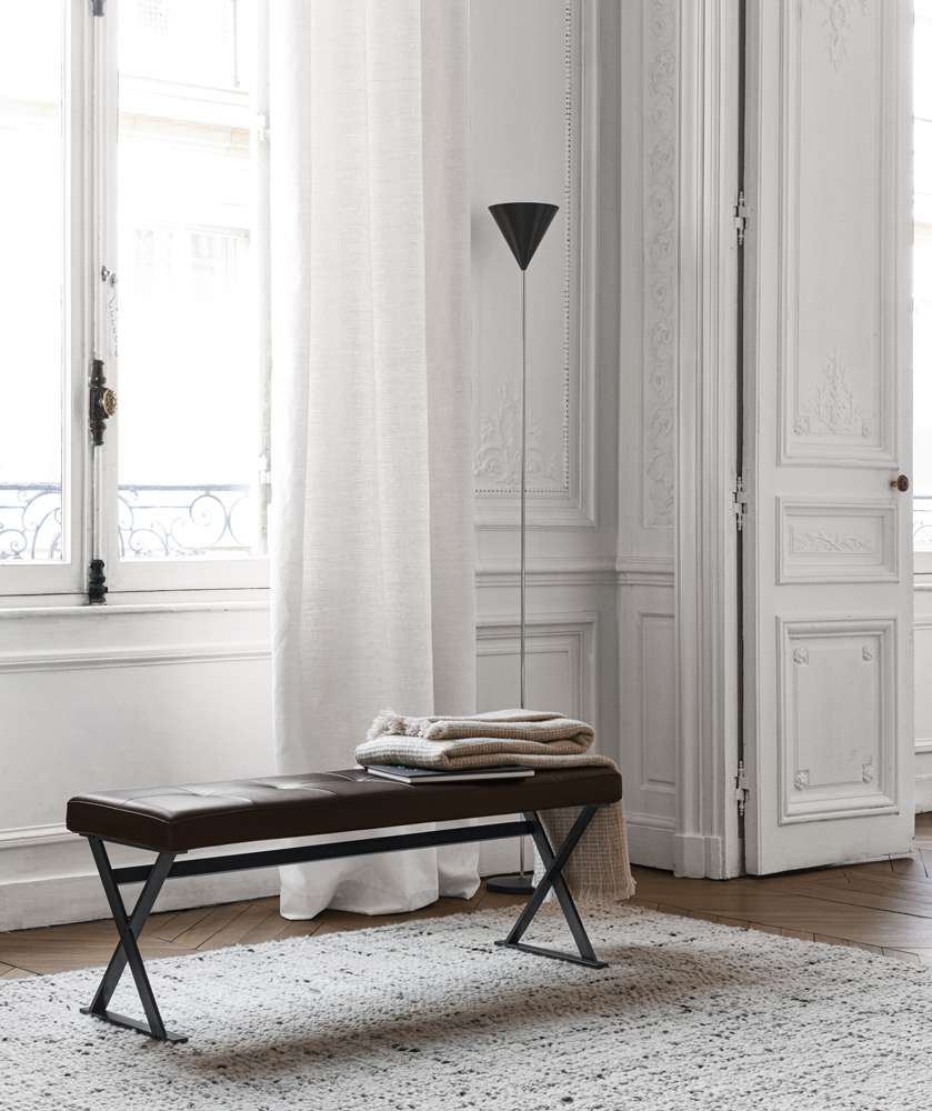 キルティングレザーまたはファブリックのカバーが付いたPathos<パソス>ベンチは、2つのサイズがあります。ダイニングルームに最適なだけでなく、リビングルームやベッドルームでは、追加のシートやトップとしても便利です。スタイリッシュなこのベンチは、テーブルや家具のPathosコレクション全体を特徴づける象徴的なX字型のメタルフレームを反映しています。