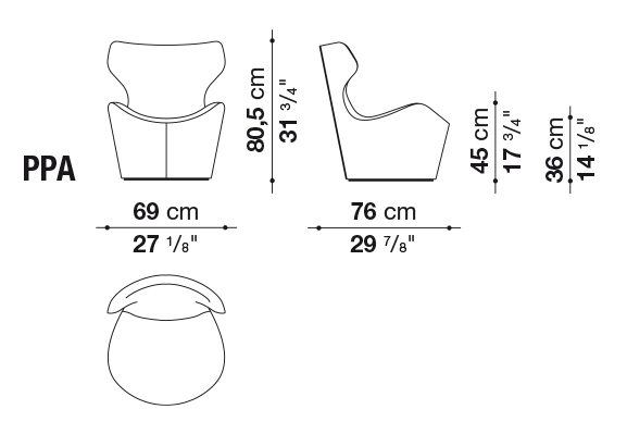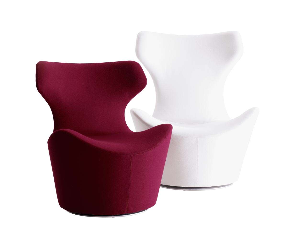 Grande Papilioの翼がユーザーの頭部を保護するならば、Piccola Papilioの翼は背中を支え、小さなサイズにもかかわらず、快適さの要求に的確に応えるシートを生み出しています。円錐形のベース形状は変わらず、背もたれの後部にはアクセントとなるジッパーが付いています。