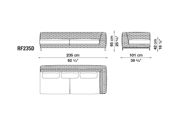 インドアコレクションとしての名声を得た後、アントニオ・チッテリオはRAYシーティングシステムに二つの新しいアウトドアコレクション“ファブリック"と"ナチュラル”を採用しました。両コレクション共に軽量な押し出しアルミニウムフレームを使っていますが、違った素材で編み込みを施している所は異なります。ファブリックコレクションは“リボン”織り技術が特徴であり、紫外線や風雨等自然の力による経年変化に抵抗力があります。カラーはターコイズ、ブルー、アシッドグリーン、トルトーラやボルドーと、幅広くご用意しています。両コレクションには二種類の奥行きを持つソファがあり、アームチェアーやシェーズロング等のエレメントが用意されています。またサンベッドはファブリックコレクションのみの商品となります。