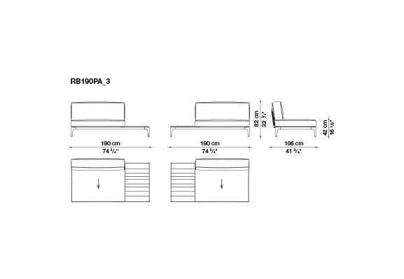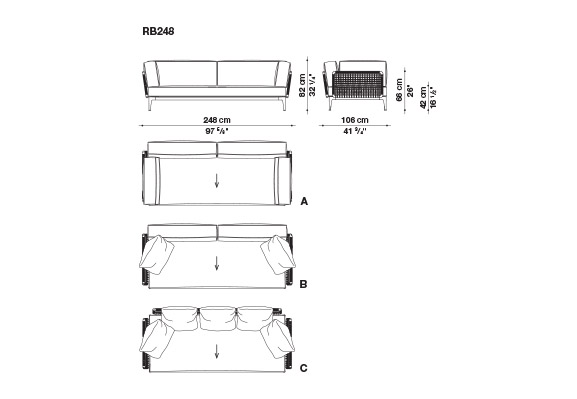 南米への何度もの旅行で集められた伝統的な布地の明確な配色にインスパイアされて、それを再構築して、最大限のカスタマイズを可能にするさまざまな組み合わせの幅広い選択肢を模索してシートクッション、バッククッション、アームクッションは、必要に応じて幅広や狭い縞と点線または単色の素材で互いが調和したさまざまな色合いで覆うことができます。