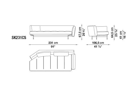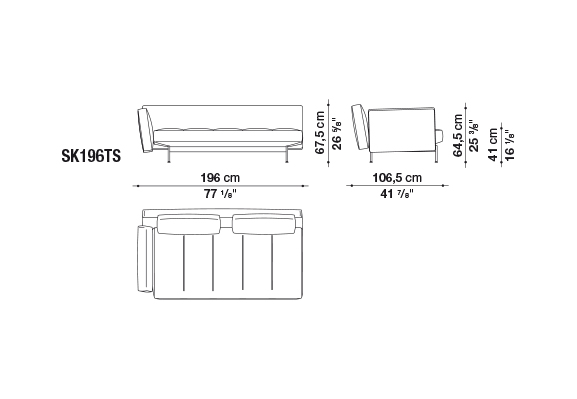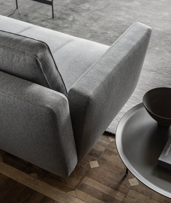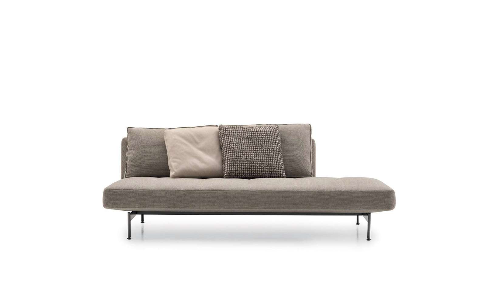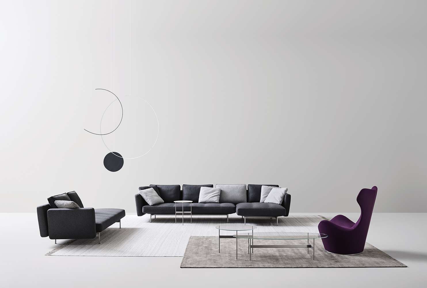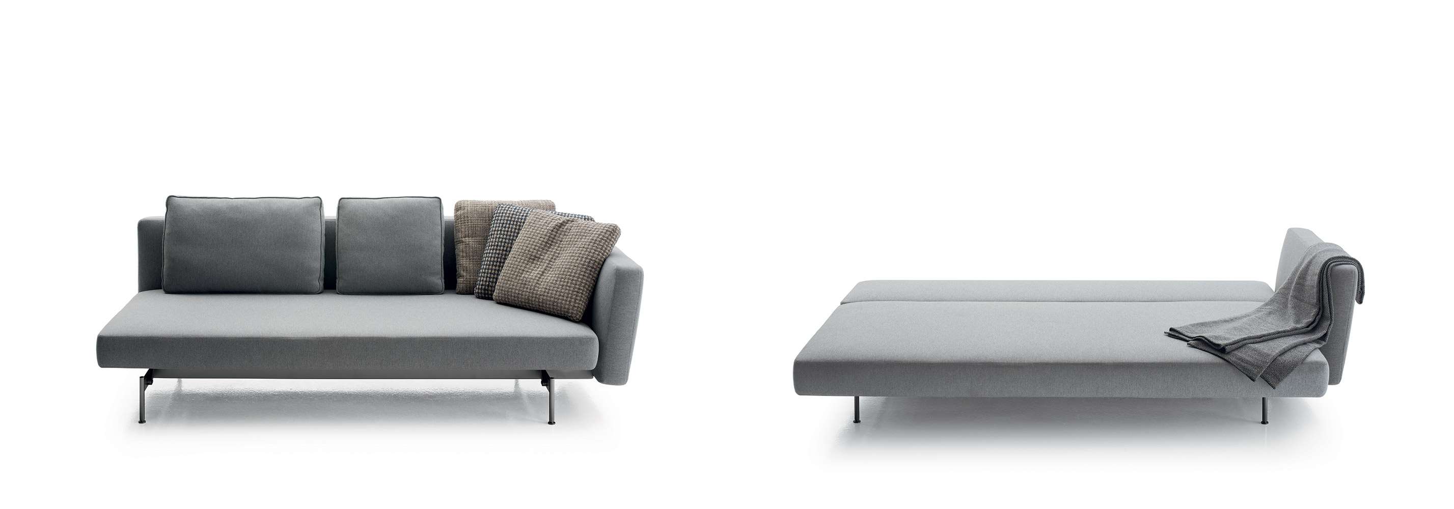 初めてB&B Italia のためにデザインされたソファSAKé(酒)、ここからB&B Italiaとピエロ・リッソーニとのコラボレーションが始まります。コンテンポラリーな印象のシーティングシステムは、緻密な研究を基に斉整たるバランスに仕上げられ、他の製品と明確な差別化がされています。囲い込むような形状と直線的なシートバック、そして豊富なサイズ展開は、置かれる空間に調和し趣向に合せた選択を可能とさせています。また、単体でも十分に美しさを表現するシェーズロングは、他のエレメントと組合わせることでバリエーションを拡げたり、並置することでより深く快適なソファを形造ることも可能とします。シートクッションには35cmまたは45cm間隔に洗練されたモジュラーステッチが施され、背部にはパイピングで縁取りされた2サイズのバッククッションがゆったりとした心地よさを演出します。さらに、B&B Italiaのコレクションで唯一ソファベッドが存在し、簡単なシート移動操作とバックレストを倒すことによりソファがベットに変貌します。左右どちらかを選択できるアームレストはヘッドボードの役割を果たします。シーティングシステムの基壇にはピューター塗装が施されたクロスバーに棒状のスチール脚が取付けられ、このソファ全体のデザインをより軽やかにみせています。