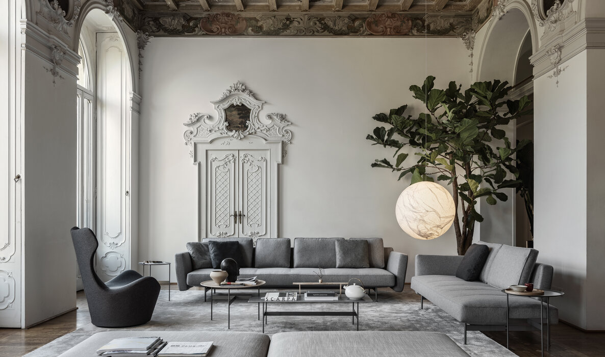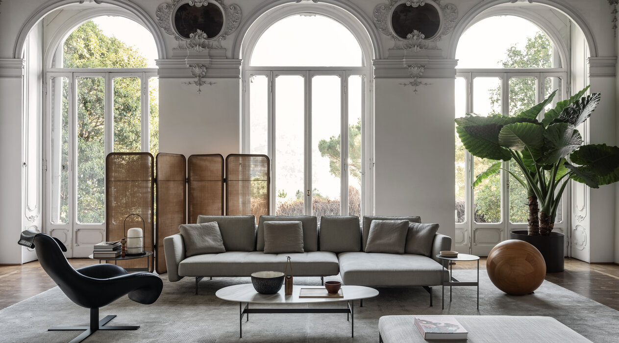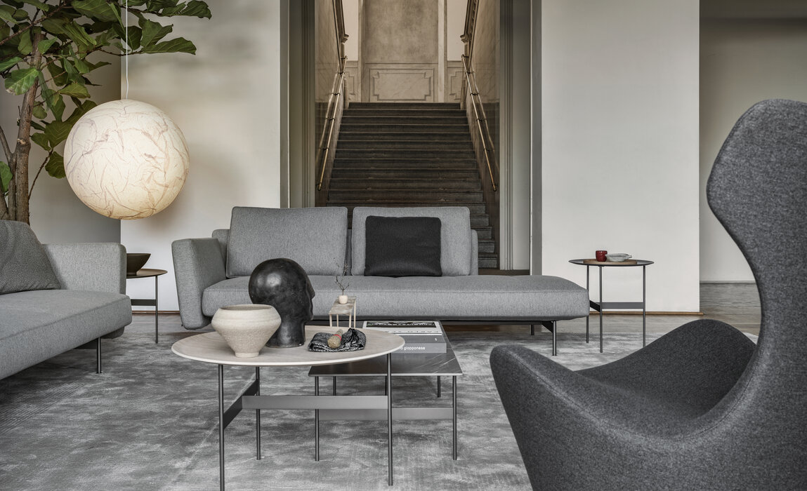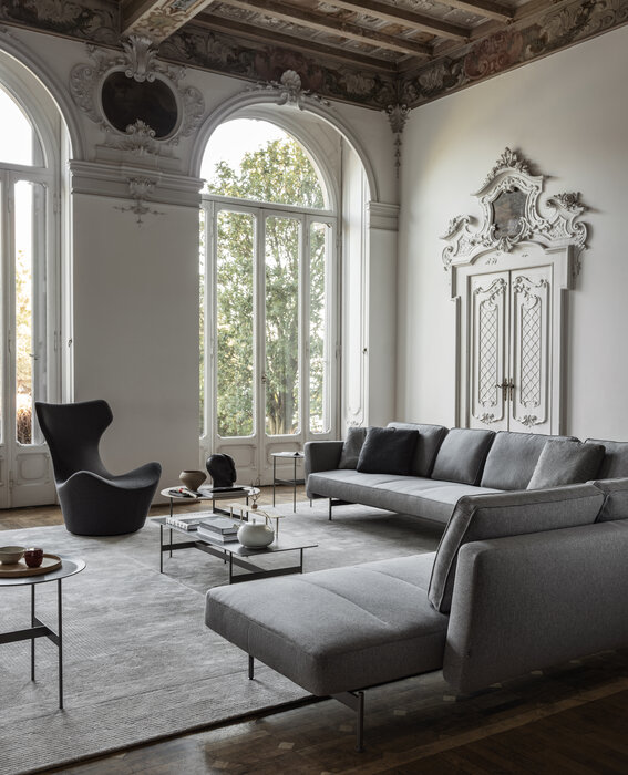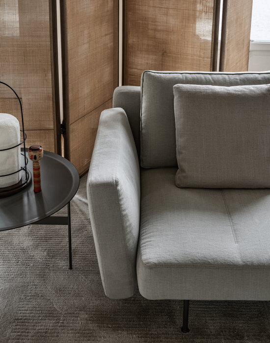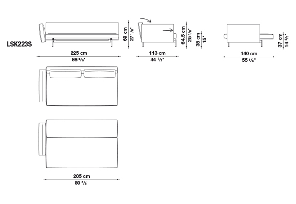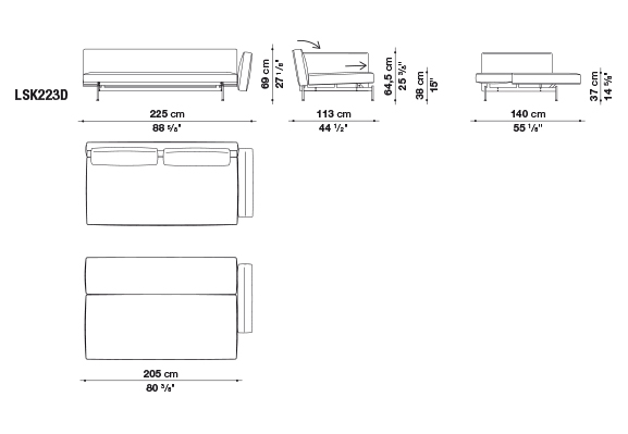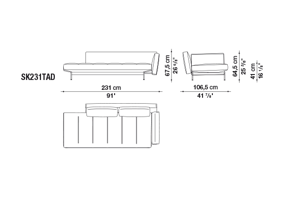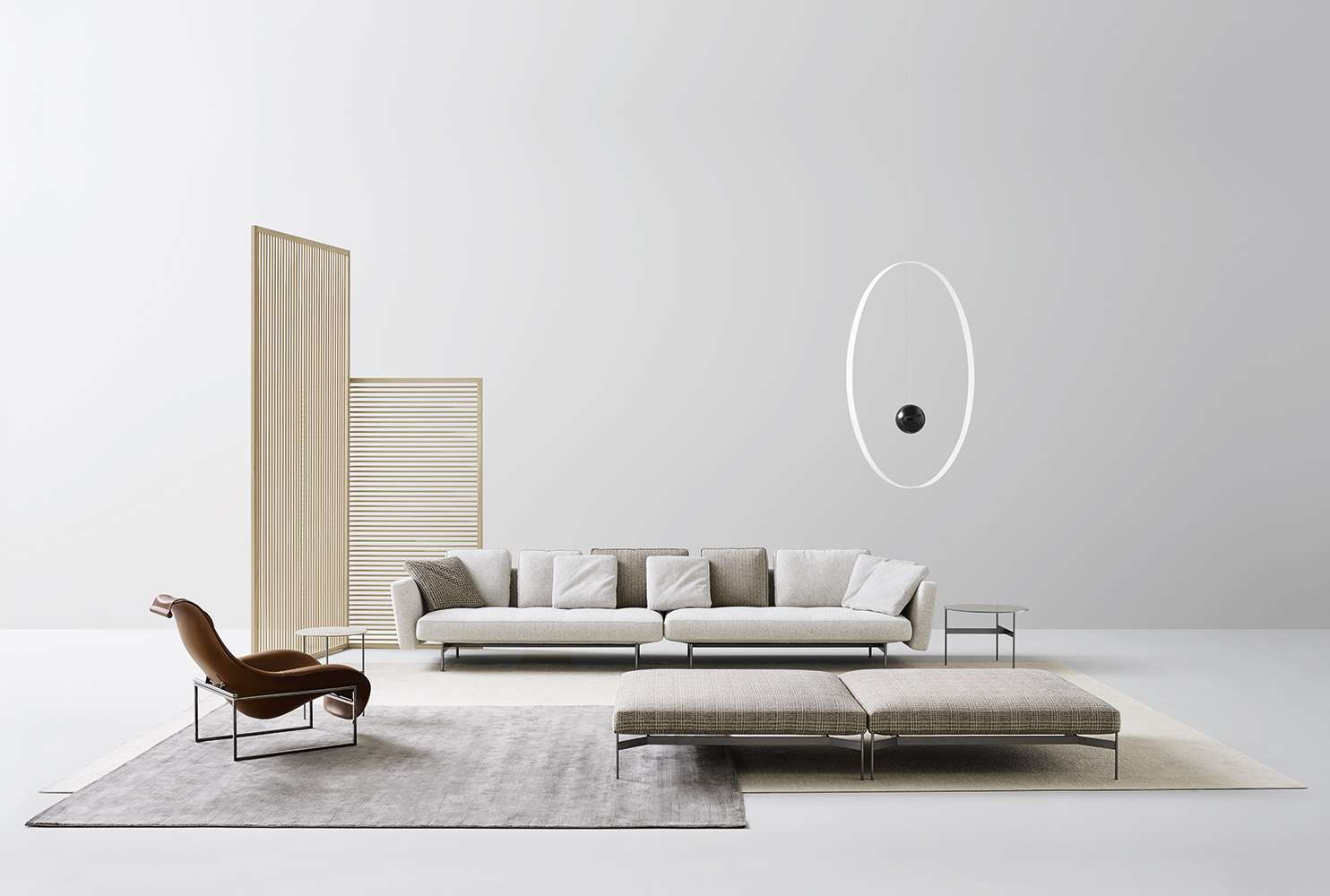 初めてB&B Italia のためにデザインされたソファSAKé(酒)、ここからB&B Italiaとピエロ・リッソーニとのコラボレーションが始まります。コンテンポラリーな印象のシーティングシステムは、緻密な研究を基に斉整たるバランスに仕上げられ、他の製品と明確な差別化がされています。囲い込むような形状と直線的なシートバック、そして豊富なサイズ展開は、置かれる空間に調和し趣向に合せた選択を可能とさせています。また、単体でも十分に美しさを表現するシェーズロングは、他のエレメントと組合わせることでバリエーションを拡げたり、並置することでより深く快適なソファを形造ることも可能とします。シートクッションには35cmまたは45cm間隔に洗練されたモジュラーステッチが施され、背部にはパイピングで縁取りされた2サイズのバッククッションがゆったりとした心地よさを演出します。さらに、B&B Italiaのコレクションで唯一ソファベッドが存在し、簡単なシート移動操作とバックレストを倒すことによりソファがベットに変貌します。左右どちらかを選択できるアームレストはヘッドボードの役割を果たします。シーティングシステムの基壇にはピューター塗装が施されたクロスバーに棒状のスチール脚が取付けられ、このソファ全体のデザインをより軽やかにみせています。