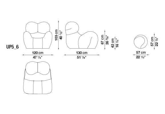 1969年にデザインされたUPは、発売当初からデザイン界で最も傑出した作品として称されてきました。サイズが異なる7つのモデルを取り揃えています。UP5_6はシリーズ中では最も有名で、モダニティの象徴であり、囚われの身となっている女性のメタファーでもあります。伝統とモダン、双方を讃える巨大な彫刻のようなUPは正にアートとデザインの融合、現代の名作ともいうべき作品です。