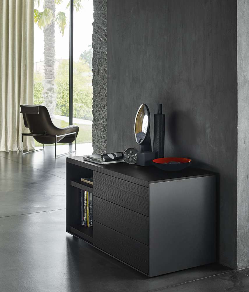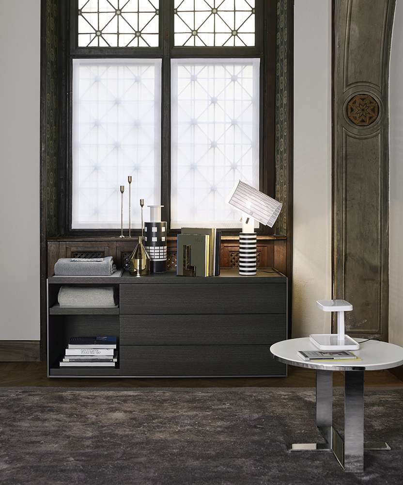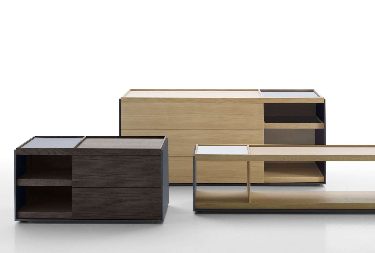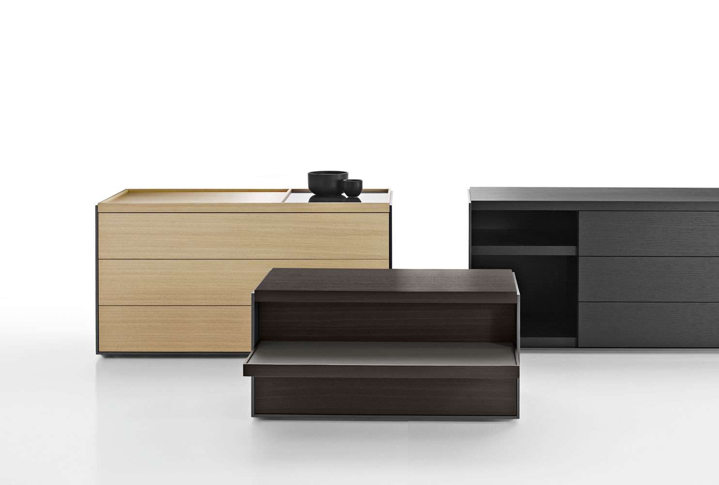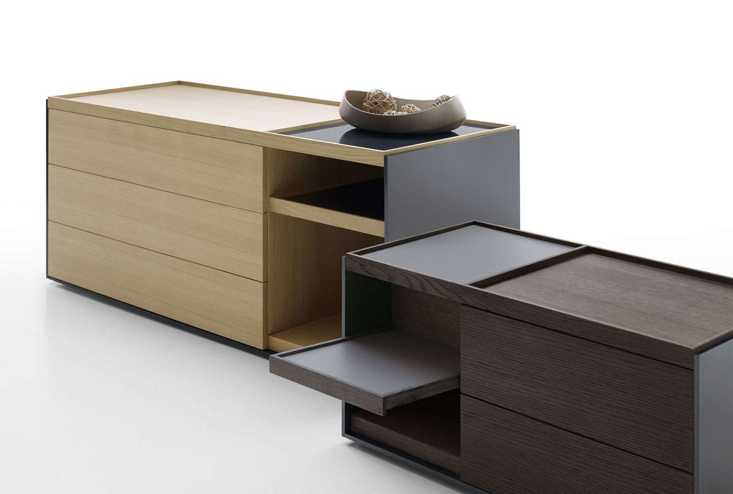 引き出し付きのSurface<サーフェス>ストレージは、スモールテーブルシリーズの素材と仕上げの組み合わせをすべて受け継いでいます。